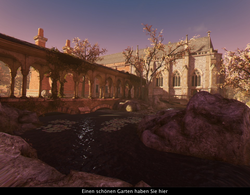 Sofort im Startbild fällt auf, dass die Grafik sehr aufwändig gestaltet ist. Die Umgebung und die Figuren sind hoch detailliert, die Auflösung ist für PSVR-Verhältnisse Top, die Texturen sind geschmackvoll und abwechslungsreich. Bloß wirkt es irgendwie nicht so recht lebendig. Das ist jetzt thematisch durchaus passend, da die meiste Zeit über die Zeit still steht, aber auch wenn die Figuren sich bewegen, wirken sie eher wie Animatronics als lebendige Menschen. Dieser Effekt wird vom Grafikstil begünstigt, da sie auch eher wie makellose Puppen aussehen. Die Geräuschkulisse ist eher schlicht, neben einfachen Soundeffekten gibt es einen atmosphärischen Soundtrack, der meist kaum auffällt. Bloß in einigen Schlüsselmomenten wird mit Anpassung der musikalischen Untermalung ein atmosphärischer Akzent gesetzt, was dann aber dadurch auch gut wirkt. Text und Sprache gibt es wahlweise auch komplett auf Deutsch, mit professionellen Sprechern.