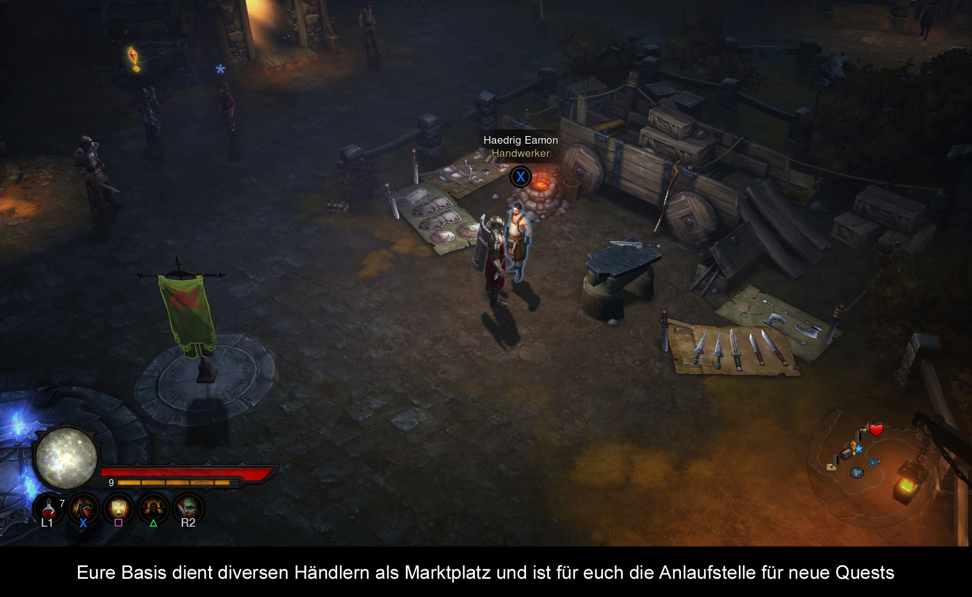 Zu Beginn jedes Durchgangs steht erstmal die Erstellung eines neuen Charakters. Denn „Diablo 3“ lässt auch zwischen sechs Klassen mit unterschiedlichen Fähigkeiten wählen. Zur Wahl stehen Klassen, wie der Kreuzritter, Barbar, Mönch oder auch Dämonenjäger. Manche sind auf den Nahkampf ausgerichtet und wieder andere konzentrieren sich auf Zauber und andere fiese Tricks. Dabei sollte für jeden Spieltyp etwas dabei sein und prinzipiell kann man mit jedem Charakter das Spiel problemlos spielen. Wenn man dann mal mit seinem Charakter im Spiel ist, findet man sich meist in seiner Heimatstadt wieder. Dies ist eine Art Rückzugsort an dem ihr Händler und Schmiede findet und euch eure nächste Quest holen könnt. Diese schickt euch dann meist in irgendeinen entfernten Dungeon, welcher voller Monster ist. Hier müsst ihr dann eure Fähigkeiten geschickt einsetzen, um nicht sofort das zeitliche zu segnen. Mit X führt ihr dabei einen normalen Angriff aus und auf nahezu alle anderen Aktionstasten sind unterschiedliche Angriffe gelegt, die man zum Teil auch selbst auswählen kann. Freigeschaltet werden die Fähigkeiten mit aufsteigendem Level und man kann sie jederzeit frei tauschen, wenn sie denn schon freigeschaltet sind. Im Kampf selbst ist dann der geschickte Einsatz der Fähigkeiten entscheidend, denn meist kämpft man nicht gegen einen oder zwei Gegner, sondern eher gegen dutzende. Teilweise sind es so viele, dass man völlig die Übersicht verliert und im Chaos dann untergeht. Da helfen selbst die besten Markierungen nichts, wenn bei lauter Zauber und Monstern der Bildschirm voll ist.