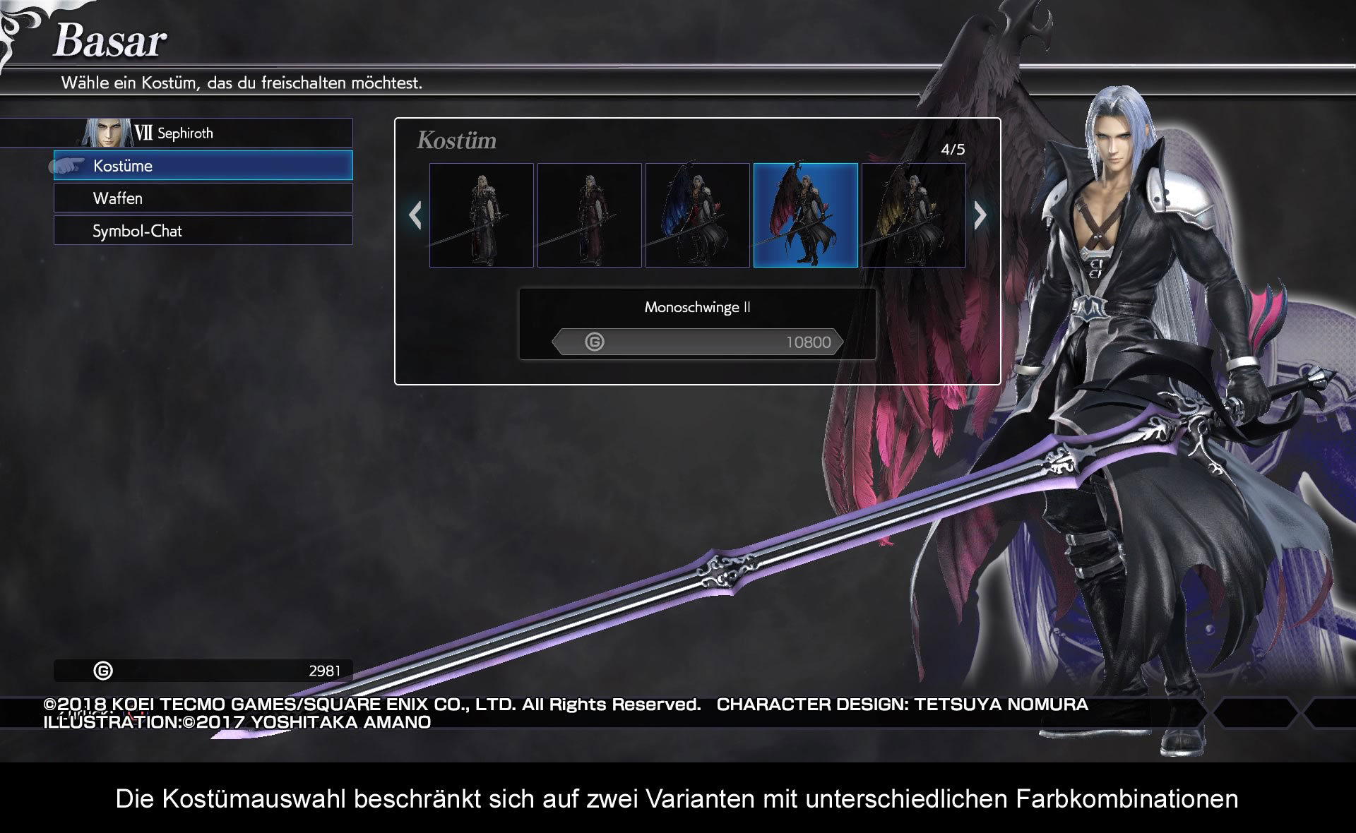 Bei Dissidia verbringt man die Zeit mit Kämpfen und häuft Reichtümer an. Wie bereits beschrieben, wird man bei erfolgreichen Kämpfen mit Handlungs-Sphären belohnt. Diese können dann im Story-Modus für eine Handlungsszene oder einen Kampf eingetauscht werden. Daneben schaltet man noch Schatz-Sphären frei. Beim Einlösen wird man mit verschiedenen Items wie Profil-Bilder, Lieder, Kostüme, Waffen-Designs oder Chat-Sätzen belohnt. Mehr Optionen zum Freischalten wird man nicht finden. Mit den erworbenen Gil kann man diese Schätze auch direkt freischalten. Dies ist der schnellste Weg an ein anderes Kostüm für seinen Helden zu kommen. Jeder Held und Schurke hat hier zwei Sets mit drei verschiedenen Farbstilen zur Auswahl. Viel Luft zur Personalisierung des Helden bleibt hier nicht und man wird online auf die ewig gleichen Designs treffen. Man setzt wie bei vielen hier wohl auch auf DLC und die erhofften Zusatzeinnahmen. Das Spiel ist sehr spartanisch gehalten und es fehlt an interessanten Extras wie auch Online- und Offline-Modi. Neben lächerlichen Handlungskämpfen darf man sich noch in 3 vs. 3 Kämpfen und in Kristall 3 vs. 3 Kämpfen beweisen, wobei spielerisch hier nicht viel Unterschied ist. In ersteren muss man die gegnerische Gruppenlebensleiste reduzieren, bei letzteren den gegnerischen Kristall zerstören. Keine Arcade-Leitern, keine Online Bestenlisten usw.