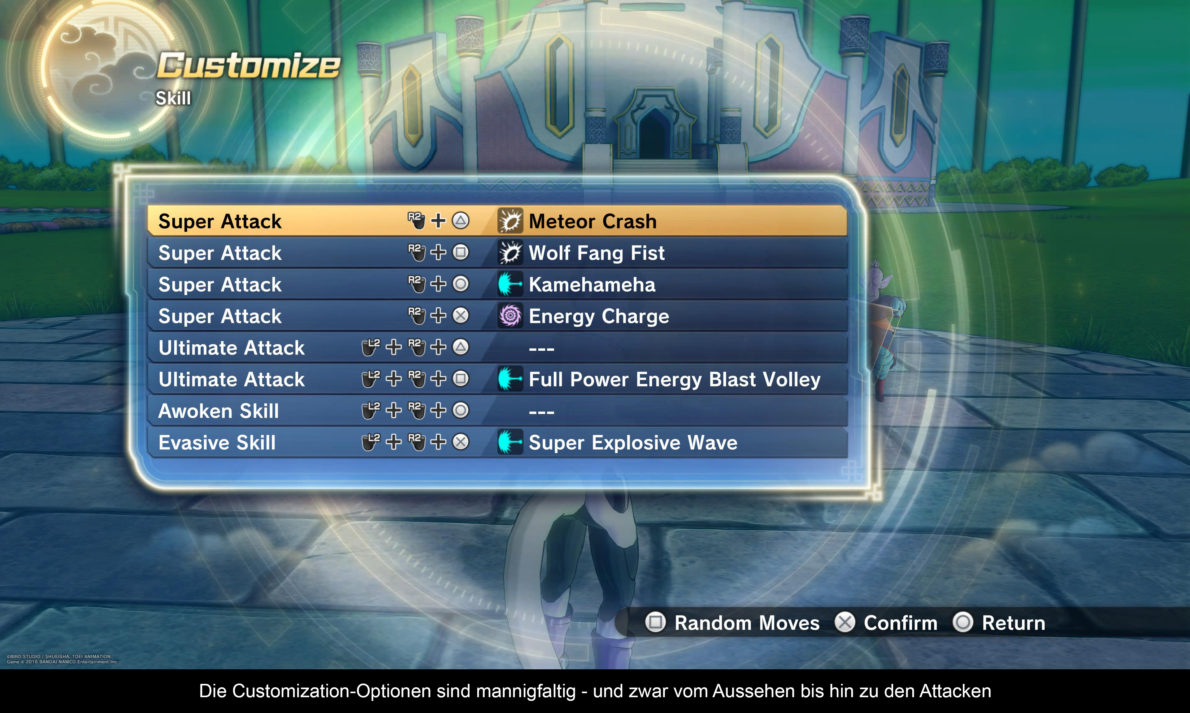 Und das Gameplay an sich ist nicht schlecht. So kontrolliert ihr euren Kämpfer durch eine weitläufige 3D-Welt, wo ihr stets auf verschiedene Gegner trefft, die ihr dann in bester DB-Manier mittels Faust- oder KI-Attacken besiegen müsst. Während ihr euren Kämpfer also mit dem linken Analog-Stick durch die Gegend manövriert, werden die Face-Buttons genutzt, um verschiedene Attacken durchzuführen. Und gerade bei den Attacken steht ihr vor der Qual der Wahl, da ihr im Laufe der Zeit vom Kame Hame Ha bis hin zum Ultra Instinkt eine schier unendliche Anzahl an Fähigkeiten freischalten könnt. Dabei ist es allerdings immer wichtig, bei der Auswahl eurer Skills auf eine gute Balance zwischen Nah- und Fernkampf-Attacken zu setzen, da eure Gegner sämtliche Tricks anwenden werden, um euch das Handwerk zu legen. Gleichzeitig dient jeder Kampf auch dazu, euren Charakter immer stärker zu machen. Die gewonnenen Erfahrungspunkte kann man dann im Anschluss auf verschiedene Werte, wie Stärke, Ausdauer oder Super-Attacken verteilen. Und gerade die Defensive sollte hierbei nicht vernachlässigt werden, da eure Gegner insbesondere in den späteren Missionen gnadenlos zuschlagen können. Anstatt also alle Fähigkeitspunkte in die Offensive zu stecken, lohnt es sich auch, die Ausdauer nach und nach aufzuwerten, um feindlichen Manövern geschickt ausweichen zu können. Und während die Story- und Trainer-Missionen (hier fungieren Serien-bekannte Charaktere als Trainer und bringen euch ihre persönlichen Special Moves bei) in Sachen Schwierigkeitsgrad noch recht akzeptabel sind, warten vor allem im End-Game zahlreiche Inhalte auf euch, die einen gut gestärkten Charakter voraussetzen. Später dreht sich der Grind dann auch nicht nur um die zuvor angesprochenen Charaktere-Werte, sondern auch um die anlegbaren Ausrüstungsgegenstände, die euch einen zusätzlichen Boost geben können. Es liegt dann am Spieler selbst, wie viel Grind man in das Spiel investieren möchte. Zugegebenermaßen reichte es mir als Casual-Spieler, die Kampagne zu spielen und ein paar Nebenmissionen zu machen, aber wer sich vollständig in die Welt von Xenoverse 2 verlieren möchte wird reichlich Content finden, um sich Dutzende von Stunden an die Konsole zu binden. Hier rücken insbesondere die Mehrspieler-Modi in den Vordergrund, wo man entweder offline (mit KI-gesteuerten Charakteren) oder online mit bis zu 2 weiteren Spielern verschiedene Missionen bestreiten kann, um wertvolle Items zu erhalten. Alles in allem lässt sich also sagen, dass Xenoverse 2 reichlich Content bietet und euch über viele Stunden unterhalten kann. Allerdings muss ich an dieser Stelle auch sagen, dass das Gameplay inzwischen nicht mehr ganz so zeitgemäß ist. Klar macht es Bock, mit wuchtigen KI-Attacken durch die Gegend zu schießen, aber angesichts der Tatsache, dass man auf Dauer wirklich Hunderte von Kämpfe bestreiten wird, kann man nicht leugnen, dass mit der Zeit eine gewisse Sättigung eintritt. Insbesondere, wenn man sich zusätzlich auch noch dazu entschließt, ein Blick auf die zahlreichen DLC-Add-Ons zu werfen, die zwar auf der einen Seite zahlreiche Zusatzinhalte, wie neue Charaktere, Kostüme, Szenarien, Fähigkeiten und Missionen mit sich bringen, aber wiederum auch ganz schön kostspielig sein können und Spielerisch kaum was Neues bieten.