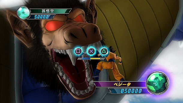 Doch genug von der altbekannten Geschichte, wie schaut es mit den Charakteren und Kampfsystem aus! Leider sehr ernüchternd. Trotz der langen Handlung hat es nur ein Teil der Charaktere ins Spiel geschafft. Auf Schmerzlichste vermisst man Charaktere wie Son Goten, Kid Trunks, Mr. Satan und Videl. Neben diesen "kleineren" Rollen vermisst man auch den erwachsenen Son-Gohan im SSJ Modus, wie auch Son Goku und Vegeta als SSJ4. Das Kampfsystem fällt leider sehr flach aus, andererseits erwartet man auch kein Street Fighter. Grundsätzlich rast man auf den Gegner zu und setzt ihm mit schnellen Viereck Combos zu. Waren diese erfolgreich kommt man zu einem Auswahl Schirm wo man sich für Viereck oder Dreieck entscheiden muss. Bei Viereck kommt eine Folge von Schlägen, die dem Gegner KI entzieht. Hingegen bei Dreieck wird man mit eigener KI Energie belohnt. Hat man seine Energie aufgeladen, kann man einen Superangriff, wie das Kamehameha starten. Hier hat wiederum der Gegner die Möglichkeit diesen Angriff auf drei Arten zu blocken bzw. abzuwehren, sofern dieser seine Aura entsprechend hoch aufgeladen hat. Hört sich alles sehr kompliziert an, ist es aber nicht. Alle Kämpfe laufen nach demselben Prinzip ab. Die einfachste und simpelste Methode für ein schnelles KO, ist den Gegner von hinten zu über rumpeln und ihm mit Dreieck Attacken zuzusetzen. Ist der Gegner geschwächt, folgt der Superangriff. Abgesehen von dieser simplen und effektiven Methode bietet das Kampfsystem noch ein paar Dinge, wie Fernangriffe, Verteidigung, aufladbare Aura und Verwandlungen. Von den Verwandlungen bin ich sehr enttäuscht. Diese haben anscheinend keinen Einfluss auf die Lebensenergie, Verteidigung oder Angriff. Ein Son Goku SSJ Level 1 spielt sich gleich wie Son Goku SSJ Level 3. Hier ist irgendwas falsch gelaufen. Klar, für einen ordentlichen Online Modus müssen alle Charaktere gleich stark sein, aber hätte man hier nicht eine Option einführen können welches das Handicap regelt? Ein weiteres verschenktes Element ist der Team Partner. Man hat die Möglichkeit zu zweit einen Kampf zu bestreiten und jederzeit den Kämpfer auszutauschen. Diese Option findet man nur einmal im Storymodus, Versus und im Training, das war es.