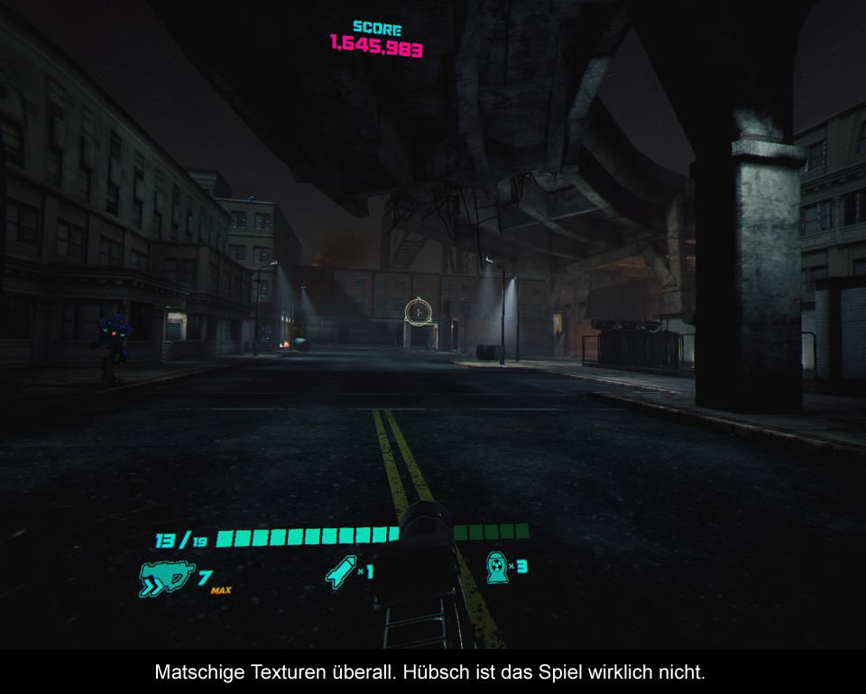 Was die Grafik angeht, erinnerte mich Drone Striker ein wenig an die guten alten PS2 Zeiten. Während das virtuelle Bild im Headset immerhin recht scharf rüber kam, enttäuschten Umgebungen und Gegner mit niedrig aufgelösten Texturen. Zwar hatte man sich beim Gegner-Design für sogenannte Mecha-Insektoiden entschieden, die zwar in Theorie eigentlich ganz cool klingen, aber am Ende optisch doch nur enttäuschten. Und obwohl das Spiel mit Unreal 4 entwickelt wurde, ist es alles in allem wahrlich kein Hingucker. Und auch der Sound hat nichts Besonderes zu bieten, und erfüllt lediglich seinen Job.