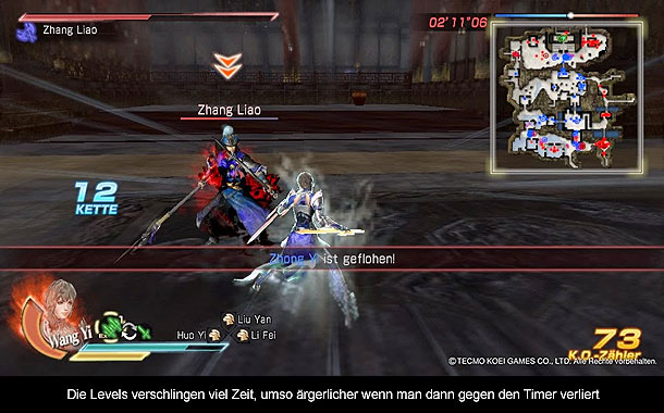 Der Dynasty Warriors Reihe hängt schon lange der Ruf hinterher, dass man mit reinem Knöpfchen drücjen jede Schlacht gewinnt. Dies trifft auch auf die leichten und normalen Schwierigkeitsgrade zu. Je schwerer die Schlachten, desto mehr sollte man aber die Combos kennen. Durch gekonntes aneinander reihen der Tasten werden so Einzelattacken oder vollflächige Attacken ausgelöst, welche Gegner herumwirbeln, verletzen oder betäuben. Für jede Situation gibt es die richtige Attacke. Sollte man doch einmal in der Klemme stecken, gibt es noch den mächtigen Musou Angriff, der schnell eine ganze Armee auslöschen kann. Neben der Musou Attacke steht dieses mal auch die Wut Anzeige im Vordergrund. Durch das Erledigen von Feinden baut sich diese immer weiter auf und kann in einem verhängnisvollen Wutangriff gebündelt werden. In diesem Zustand fegt der Charakter über das Schlachtfeld und mäht einen Feind nach dem anderen nieder.