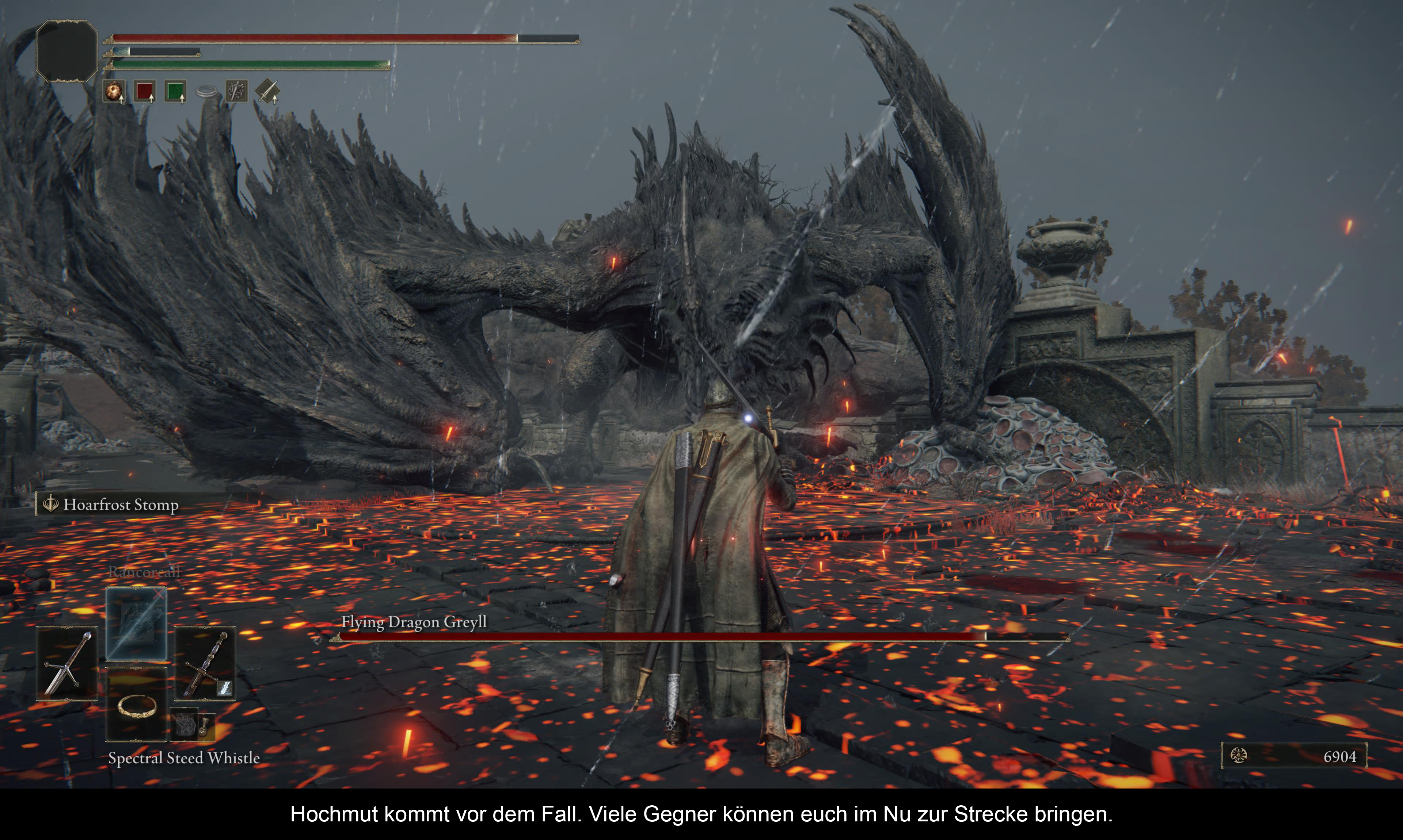 Es ist nicht einfach die Magie von Elden Ring in Worte zu fassen. Und ich hoffe, dass es mir ansatzweise gelungen ist. Denn der Besuch des Zwischenlandes ist definitiv eine Reise wert. Nicht nur für langjährige Souls-Veteranen, sondern auch für absolute Neueinsteiger. Das Spiel ist zwar zum Teil immer noch brechend hart, aber mit ein wenig Übung können selbst Rookies schnell erste Erfolge erzielen. Zusammenfassend muss man aber sagen, dass das Spiel - abgesehen von den grafischen Einbußen - wahrscheinlich als Meilenstein der Souls Franchise angesehen werden kann. Das schiere Ausmaß an Gebieten, Bossen, Monstern, Dungeons und Schlössern lässt sich kaum in Worte fassen. Und das gleiche gilt auch für die Menge an Fähigkeiten und Waffen, die einem das Spiel zur Verfügung stellt, um seinen Feinden entgegenzutreten. Und in einer Welt, wo man in den meisten Spielen heutzutage nur Wegpunkten oder sonstigen Markern folgt, zeigt Elden Ring, dass es auch anders geht - auch wenn es manchmal natürlich etwas überwältigend ist.