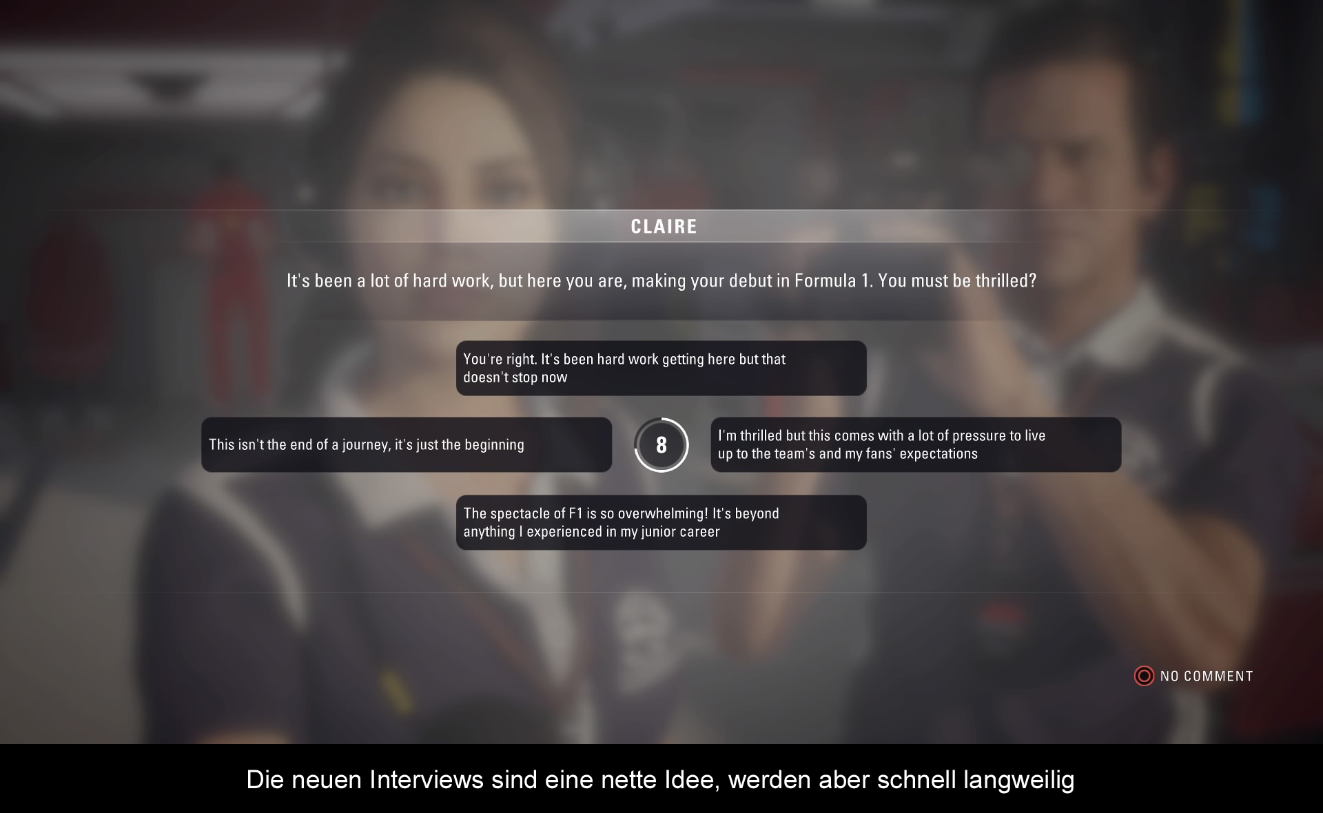 Wie auch in den vergangenen Jahren liegt der Hauptfokus auf dem umfangreichen Karrieremodus. Wie gehabt sucht man sich am Anfang ein passendes Team aus mit dem man seine Karriere beginnt. Je nach Team variiert schließlich auch der Schwierigkeitsgrad und die Geschichte eures Fahrers. Startet man zum Beispiel mit Ferrari oder Mercedes erübrigt sich ein großer Bestandteil des Spiels, da man ja bereits an der Spitze angekommen ist. Wählt man jedoch eines der langsameren Teams aus, zeigt sich hier die volle Substanz des Modus. Zunächst geht es nämlich darum mit seinen eigens erstellten Charakter möglichst viele Punkte zu gewinnen. Wie auch im echten Leben führt euch der Karrieremodus durch sämtliche neuen Strecken der F1 - von Australien über Europa bis in die USA. Es ist ein langer Weg. Aber er bietet euch auch genügend Zeit, um interessante Entscheidungen zu treffen und erfolgreiche Rennen zu fahren. Eine Neuerung in dieser Hinsicht ist zum Beispiel auch das Interagieren mit einer Journalistin, die euch nach jedem Rennen bestimmte Fragen stellen wird, deren Antworten sich auf eure Team-Mitglieder als auch auf euren Ruf auswirken. Gute Antworten lassen euren Wert steigen, und sorgen im Verlauf des Spiels dafür, dass ihr einige interessante Vertragsangebote bekommt. Obwohl die Idee nicht schlecht ist, muss ich dennoch zugeben, dass das ständige Fragen doch etwas langweilig wurde, und ich es am liebsten übersprungen hätte. Weitere Entscheidungsmöglichkeiten gibt es auch wieder mal im Forschungs- & Entwicklungsbereich zu treffen, wo ihr die Entwicklungspunkte (die ihr durch das Erfüllen von Trainingszielen erreicht) für neue Fahrzeug-Upgrades eintauschen könnt. Genauso wie in der richtigen Formel 1 ist es auch hier möglich, eurer Fahrzeug im Laufe der Saison immer schneller zu machen. Aber auch hier sieht man die wahren Auswirkungen eher bei kleineren Team, da führende Boliden wie die Ferrari ohnehin schon schneller als die anderen. Alles in allem hat sich jedoch nur wenig beim Karrieremodus getan. Er ist nach wie vor grundsolide, aber im Gegensatz zur wirklichen F1, die sich vor allem in den letzten 2 Jahren stark verändert hat, hält Codemasters weiterhin an der altbekannten Formel Fest. Und diese wird zunehmend langweiliger.