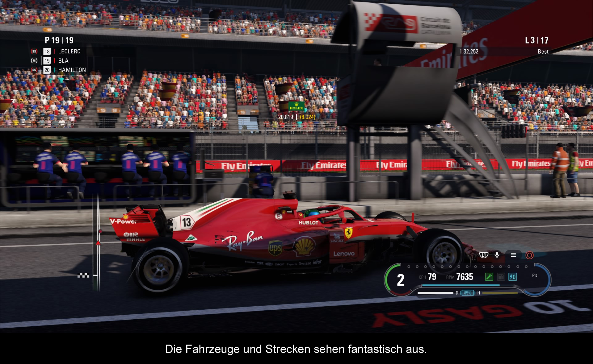 Grafisch sah eine Formel 1 Sim nie besser aus. Zwar habe ich keinen 4K TV, aber dennoch zeichnet sich das Spiel durch enormen Detailreichtum aus, sowie durch ein überarbeitetes Beleuchtungssystem, welches die Rennstrecken noch wärmer und realistischer erscheinen lässt. Und über allem Zweifel erhaben sind auch erneut die Fahrzeuge selbst, die in diesem ja auch mit dem neuen Halo versehen wurden, welches vor allem in der in der Cockpit-Perspektive bemerkbar macht, und einen erheblichen Teil eures Blickfelds beeinträchtigt. Angesichts der Tatsache, dass Halo in der aktuellen Saison aber wohl bereits ein bis zwei Leben gerettet hat, wird dieser Zusatz in den nächsten Jahren nicht mehr wegzudenken sein. Und auch virtuelle F1-Fahrer müssen sich jetzt daran gewöhnen. Eher fragwürdig sind erneut die Charaktermodelle ausgefallen, die etwas leblos und steif wirken. Was den Sound angeht, überragen vor allem die Motorensounds, die reichlich Dampf besitzen. Hinzu kommen die üblichen Boxenfunks, wo man euch die Details zum aktuellen Rennverlauf gibt. Vor jedem Rennen gibt’s dann noch einige kleine Einspieler, wo die Besonderheiten der einzelnen Strecken erläutert werden. Business as usual.