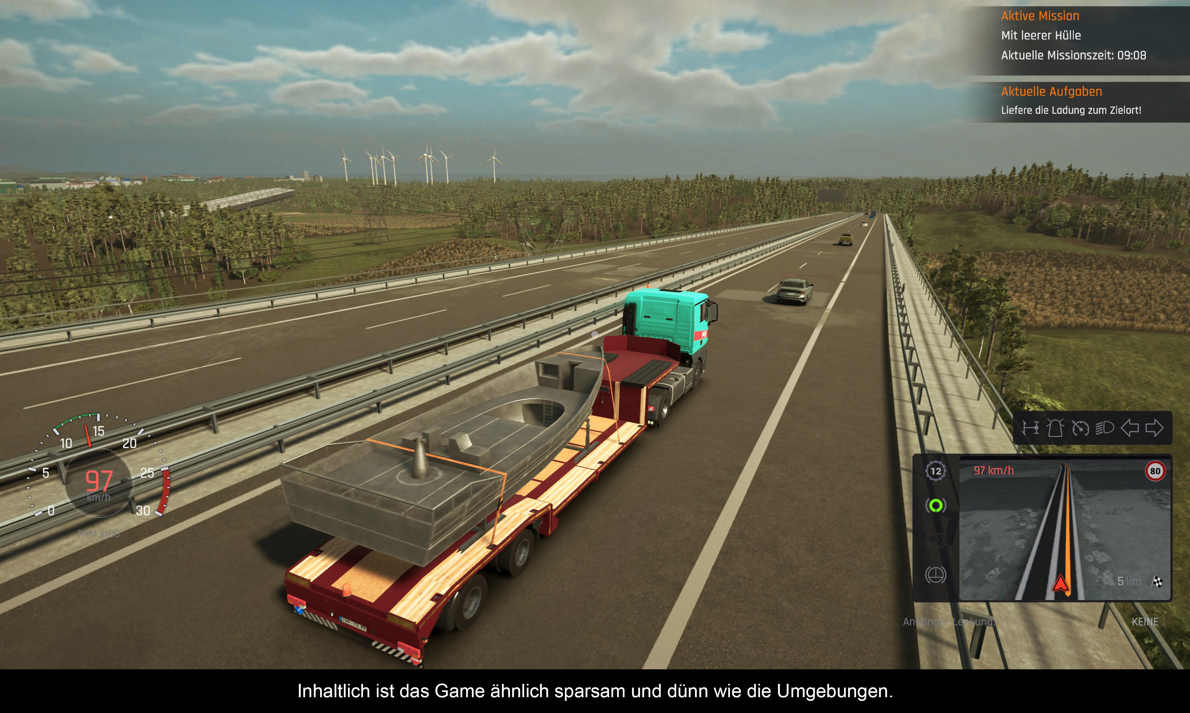 Die Aufgabe des Schwertransports besteht darin, übergroße, schwere oder unhandliche Güter sicher und effizient von einem Ort zum anderen zu transportieren. Häufig umfasst dies die Planung von Routen, das Einholen von Genehmigungen und die Begleitung durch Sicherungsfahrzeuge. Und dies wird euch bereits im umfangreichen Tutorial erklärt, wo man Schritt für Schritt den Transport durchführt. Angefangen mit der Dienstfahrt zum LKW, der Anbringung der Fracht an euren Transporter sowie dem Abbau von blockierenden Leitplanken, die eine Weiterfahrt behindern. Vor allem diese strategische Planung hebt das Spiel von anderen Genre-Vertretern ab, wo es meist nur um das Stumpe fahren von A nach B geht. Bei Heavy Cargo muss man allerdings Routen auswählen und Hindernisse wie enge Straßen, Baustellen oder Wetterbedingungen meistern. Und das Ganze findet in einer weiten, offenen Welt statt, die von dichten Wäldern und kurvigen Bergstraßen bis hin zu urbanen Industriegebieten und weitläufigen Autobahnen eine große Reihe an verschiedenen Landschaften bietet.
