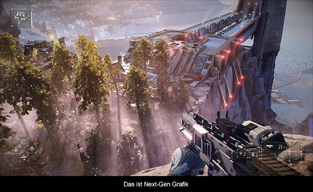 Killzone: Shadow Fall ist eines der Launchspiele der PS4 und von daher war die Zeit für die Entwicklung der Engine natürlich stark begrenzt. Was Guerilla Games hier aber abliefern, ist wirklich mehr als nur beeindruckend. Die erste Überraschung folgt nämlich schon beim Starten des Spiels. Statt sich Minutenlang diverse Werbeeinblendungen von den genutzten Engines und Publishern anzusehen, ist man hier in Sekunden schon im Menü und kann zwischen Single- und Multiplayer auswählen. Die Danksagungen erfolgen dann erst im Abspann und man kann nur hoffen, dass auch andere Entwickler und Publisher sich in Zukunft die Mühe machen werden. Aber auch ansonsten ist das Spiel technisch eine mehr als Runde Angelegenheit. Die Charaktere und Umgebungen strotzen nur so vor Details und die Level sind nun deutlich weitläufiger, als in früheren Spielen und laden auch mal zum Erkunden ein. Insgesamt bietet Killzone: Shadow Fall in Sachen Umgebungen und Design deutlich mehr Abwechslung als seine Vorgänger und kann immer wieder aufs neue überraschen. Natürlich ist auch hier nicht alles Gold was glänzt und beispielsweise der Regen ist relativ simpel gehalten und kann nicht ganz mit dem hohen Standard des Rests mithalten. Trotzdem kann man technisch kaum etwas bemängeln, da das gezeigte ohne Tearing oder auffallendes Aliasing auskommt und im Singleplayer im Grunde immer mit 30 Bildern pro Sekunde läuft und im Multiplayer sind es sogar noch mehr, wobei die stabilen 60 Bilder pro Sekunde nie ganz erreicht werden. Wenn man jedoch bedenkt, wie gut das Spiel aussieht, ist das mehr als nur in Ordnung, da größere Sprünge in der Bildrate gekonnt verhindert werden.