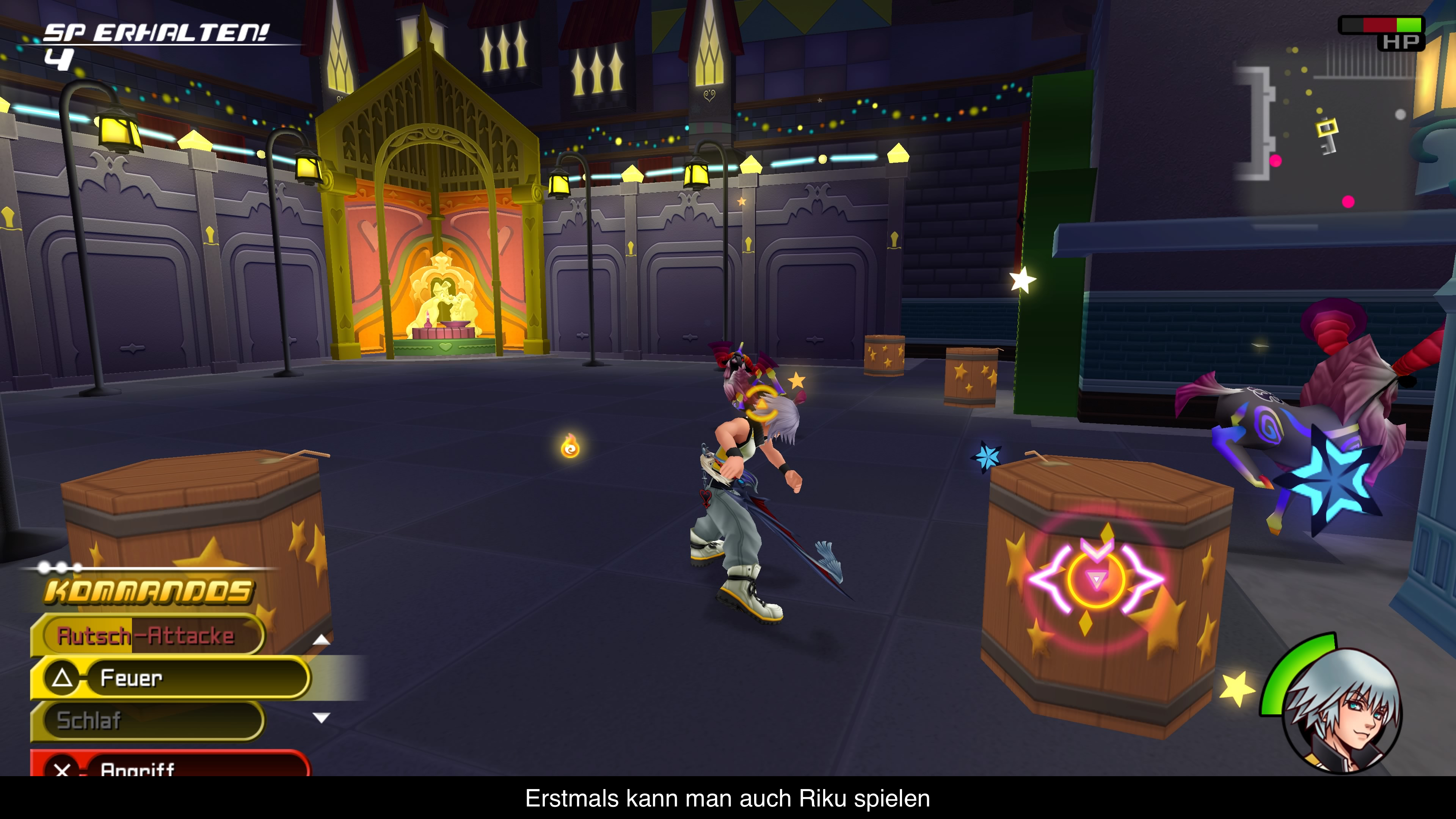 Da Goofy und Donald mit anderen Dingen beschäftigt sind, sind Sora und Riku auf sich alleine gestellt. Doch das ist nur in der Theorie der Fall. Denn die schlafenden Welten sind von sogenannten Albträumen überfallen worden und die guten Gegenstücke, die Geister bzw. Träume, könnt ihr als Helfer im Kampf nutzen. Dazu braucht ihr Rezepte und Traumfragmente, um neue Geister zu erschaffen. Diese kämpfen dann mit euch, steigen ebenfalls im Level auf und ermöglichen es neue Fähigkeiten für euch freizuschalten. Das ganze System erinnert ein wenig an Pokemon und ist gut umgesetzt worden, wobei sie im Kampf selber eher weniger Einfluss haben. Immerhin kann man mit ihnen einen Link ausführen, der kurzzeitig besondere Fähigkeiten freischalten. Je nachdem welchen Geist man wählt, gibt es unterschiedliche Fähigkeiten.