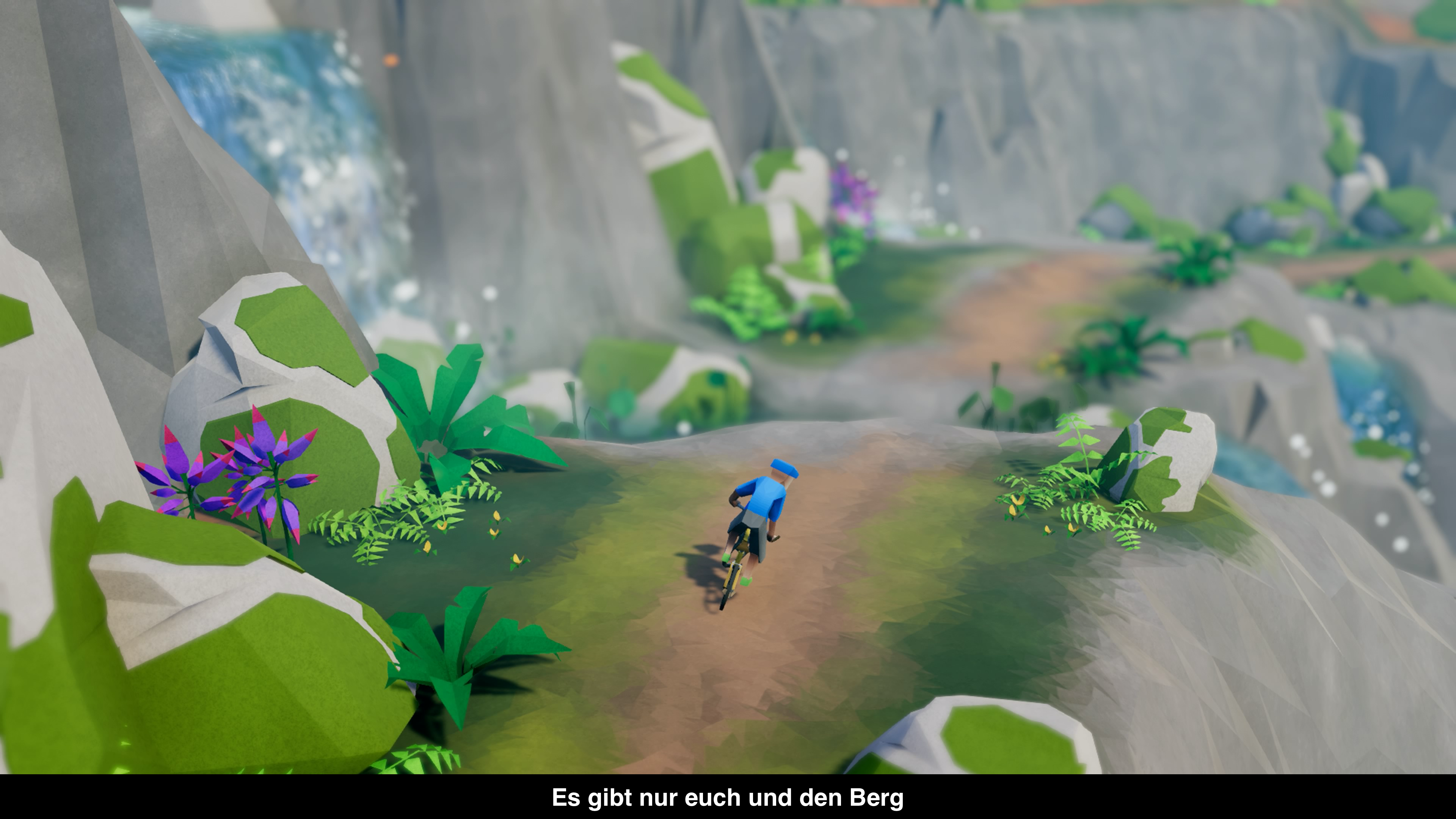 Der Grafikstil von Lonely Mountains: Downhill lässt sich am besten als Minimalistisch beschreiben. Die Entwickler verzichteten völlig auf unnötige Details und alles wird durch große, gerade Flächen dargestellt, die für einen sehr sauberen Stil sorgen. Dafür gibt es dann auch quasi keine Treppchenbildung und eine stabile Bildrate, die nur ganz selten kurze Nachladeruckler bietet. Der Minimalismus gilt auch für den Sound, denn eine musikalische Untermalung sucht man leider vergeblich. Stattdessen lässt man die Natur für sich sprechen und so hört man Vögel zwitschern, das Rollen des Rads oder einen Wasserfall im Hintergrund.