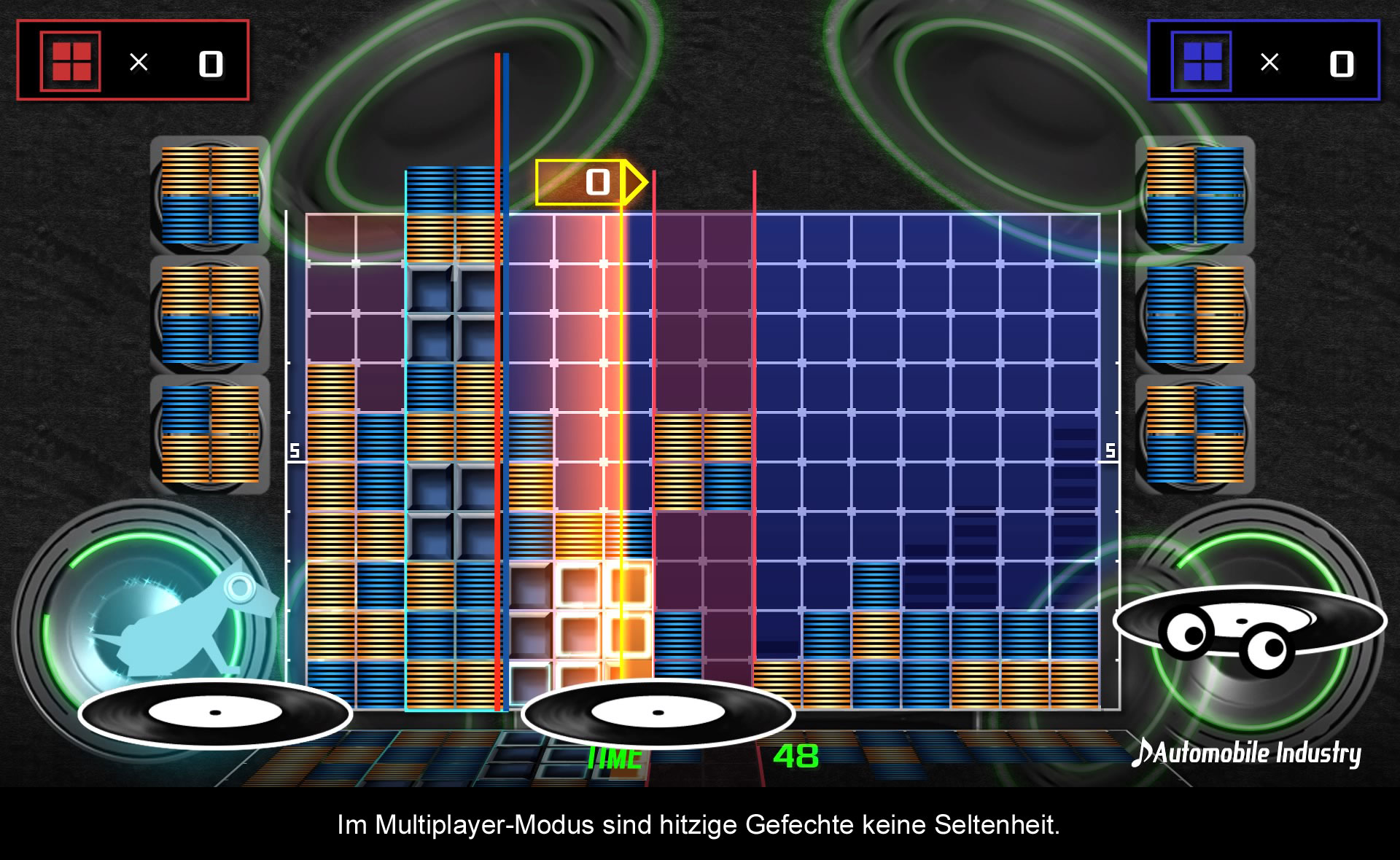 Die Neuauflage von Lumines kommt mit zahlreichen Modi. Während der Challenge Mode, wie schon beim Original ein unendliches Spielerlebnis bietet, welches erst zum Ende kommt, wenn man mit den Klötzchen den oberen Teil des Bildschirms erreicht hat, bietet das Spiel auch noch einen Time-Attack Modus, wo es darum geht möglichst viele Vierecke innerhalb einer bestimmten Zeit aufzulösen sowie einen Puzzle-Modus, wo es darum geht verschiedene Formationen mit Hilfe der Blöcke zu schaffen als auch einen Missions-Modus, wo einem das Spiel unterschiedliche Herausforderungen vorgibt, die man erfüllen muss. Richtig überrascht hat mich jedoch der Zweispieler-Modus, wo man entweder gegen die CPU oder gegen einen zweiten menschlichen Spieler antritt. Besonders interessant wird es vor allem, wenn sich in der Hitze des Gefechts euer Bildschirm verkleinert, weil der Gegner einfach zu gut ist. Umso größer ist der Hype am Ende jedoch, wenn man sich aus den Zwängen befreien und die Runde noch gewinnen konnte. Im Vorfeld hätte ich definitiv nicht gedacht, dass mir ausgerechnet dieser Modus am Meisten gefallen würde.