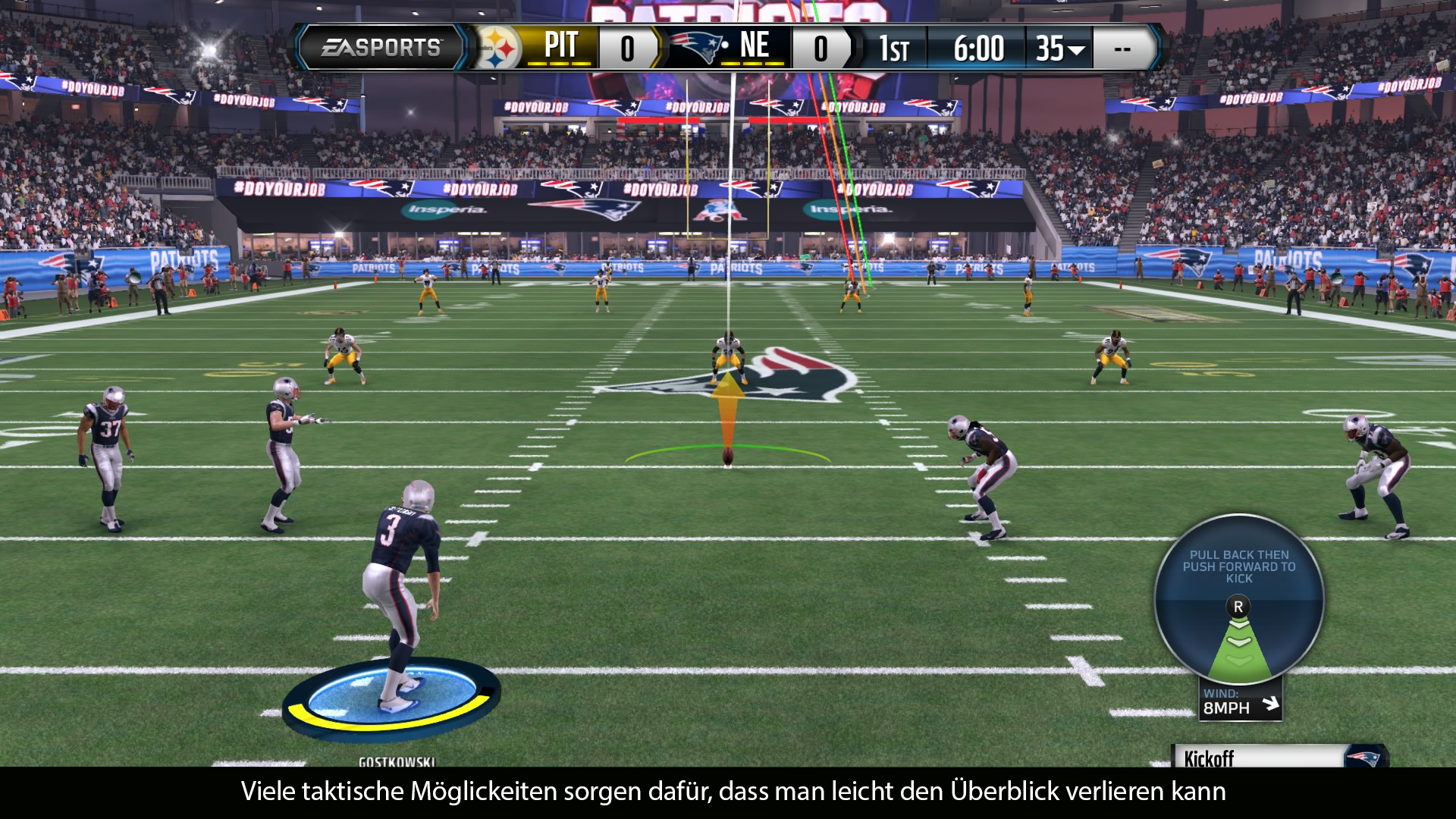 Was die Präsentation von Madden NFL 16 angeht, befindet sich EA ganz klar auf Referenz-Niveau. Angefangen mit den fantastischen und farbenfrohen Menüs bis hin zu den überragenden Einspielern vor und während der Spiele. Was EA bietet ist TV-reif und beeindruckend. Die EA Lizenz wird tatsächlich in ihrer ganzen Bandbreite ausgenutzt. Hinzu kommen authentische Stadien und superbe Wettereffekte. Die Matches selber laufen mit sauberen 60fps. Auch die Animationen wirken sehr rund und nicht mehr so hakelig, wie noch zu PS3 Zeiten. Abgerundet wird das Paket durch die englischen Kommentatoren, die sehr authentisch und motiviert wirken. Einzig die langen Ladezeiten sorgen für einige Abstriche in der B-Note.