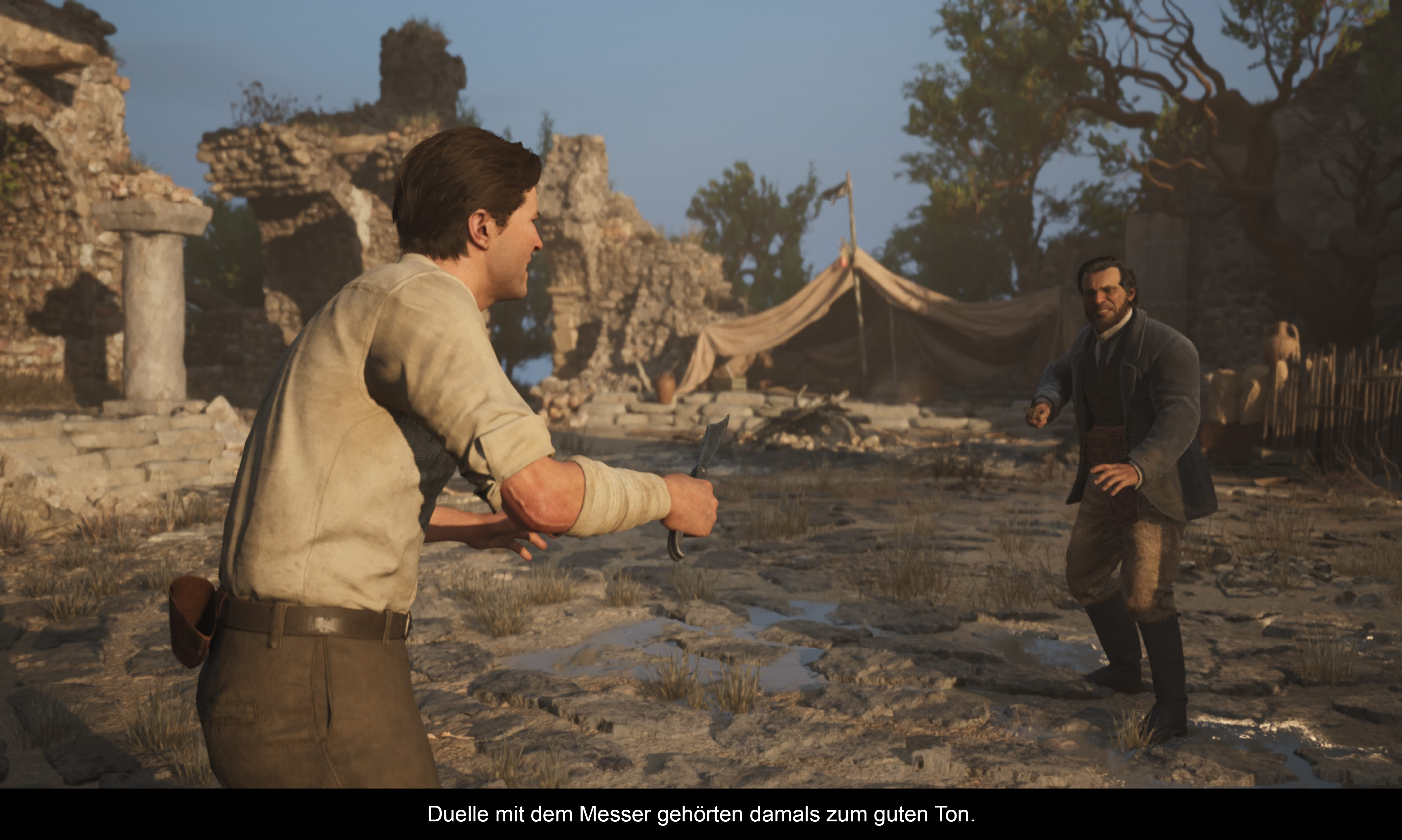 Alles in allem funktioniert es recht gut, auch wenn vereinzelte Schleichmissionen eher nerven als Spaß machen. Die Checkpoints sind fair gesetzt, sodass man auf mittlerem Schwierigkeitsgrad gut durchkommt. Die Messer-Duelle treten etwas zu oft auf, denn diese Mechanik ist nicht besonders komplex. Dafür sind Reiten und Autofahren gut umgesetzt. Rätsel gibt es keine, ebenso wenig rollenspielartige Dialoge oder Entscheidungen, die die Missionen oder das Spielende beeinflussen würden.