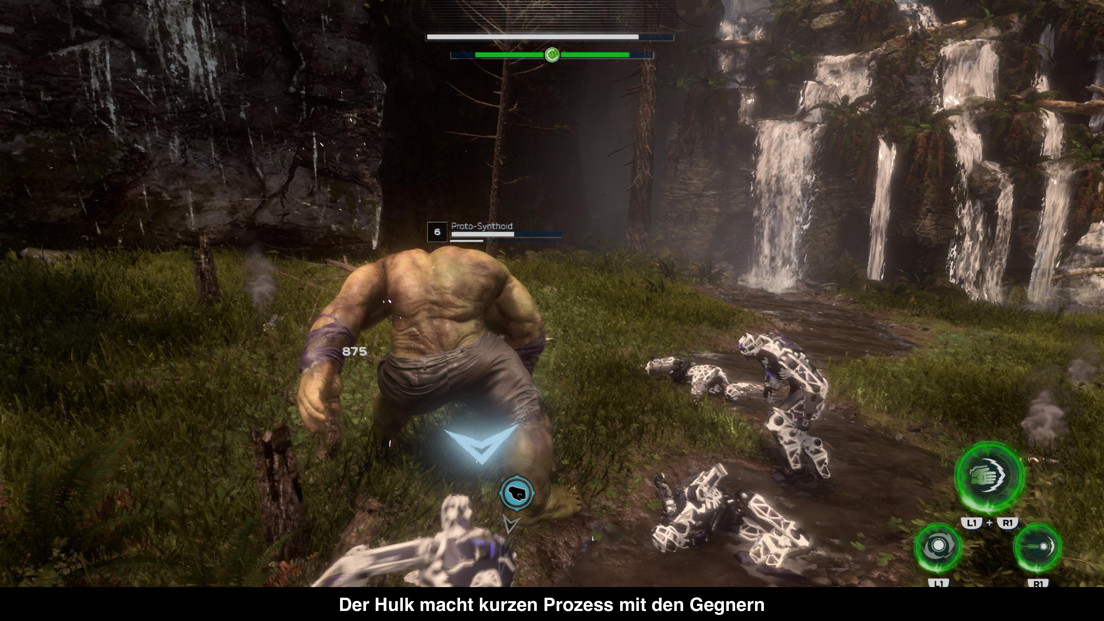 Marvel`s Avengers versteht sich in erster Linie als Servicespiel, wie Destiny oder das gescheiterte Anthem. Trotzdem bietet man eine Hauptgeschichte mit Zwischensequenzen und allem drum und dran, die in erster Linie das Spielprinzip beibringen soll. Man schlüpft also nach und nach in die Rollen der einzelnen Charaktere und kämpft sich durch unzählige wirklich gleich aussehende Gegnerhordern. Dabei spielen sich die meisten Charaktere ziemlich gleich und man hämmert wie wild auf die Knöpfe um den Gegner den Gar auszumachen. Einzig Iron Man sticht hier wirklich hervor, da er fliegen kann. Die anderen Charaktere sind sich recht ähnlich und unterscheiden sich eher in Details. Auf Dauer wird das Gekloppe auch wirklich ermüdend und das Spiel erhöht den Schwierigkeitsgrad einfach durch die Anzahl der Gegner, die dann mit Projektilen und anderen Tricks nicht sparen und so für Frust sorgen. Zudem ist die Geschichte nur eine nette Beigabe, denn spielerisch sollte man keine Wunder erwarten. Statt den Charakteren spezielle Level zu widmen, darf man immer wieder durch die gleichen offenen Areale, die auch immer für alle Charaktere geschaffen sein müssen. Das heißt ein Hulk muss genauso voran kommen, wie ein Iron Man der natürlich fliegen darf. Zudem sind die Level voller langweiliger Aufgaben, wie “Halte die Stellung” oder “Besiege X Gegner”.