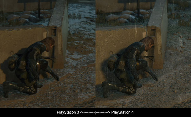 Grafisch macht das Spiel einen wirklich soliden Eindruck, auch wenn auf der PS4 der WOW-Effekt aus bleibt. Man merkt dem Spiel durchaus seine Last-Gen Wurzeln an, wobei es einige kaum zu übersehende Verbesserungen gibt. Als erstes wäre da die echte Full HD 1080p Auflösung in Kombination mit 60 Bildern pro Sekunde zu nennen. Dies sorgt für ein mehr als scharfes Bild mit einer absolut flüssigen Darstellung der Szenerie und die Bildrate geht so gut wie nie in die Knie. Hinzu kommen noch einige wirklich schöne Regeneffekte, die das Spiel am Ende doch toll aussehen lassen. Zudem kann man sogar manche Bereiche zerstören, was für schöne taktische Möglichkeiten sorgt und auch noch toll aussieht. Was den Sound angeht, gibt es keine großen Überraschungen. Dafür jedoch bei den Synchronsprechern. Denn erstmals wird Snake nicht mehr von David Hayter, sondern von Kiefer Sutherland (bekannt aus der TV-Serie 24) gesprochen. Im ersten Moment ist das noch etwas merkwürdig, doch man gewöhnt sich recht schnell daran. Vor allem da Snake in „Ground Zeroes“ eher zuhört, als spricht.