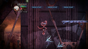 Das Spiel beginnt indem man einen von vier Ninjas auswählt und sich auf die Suche nach Faust, den Schurken, macht. Von nun an geht es durch verschiedene Abschnitte wie eine zerstörte Stadt oder über das Meer. Vor jedem Level gibt es eine animierte Zwischensequenz welche die Handlung weiter erzählt. Das Problem dabei, diese ist völlig belanglos und wird einem ziemlich schnell egal. Zudem lassen sich diese nervigen Sequenzen nicht überspringen und man wird sie relativ schnell verfluchen. Aber warum lange mit der Geschichte aufhalten, denn wie damals schon Strider steht Moon Diver für schnelle Action. Der Held bzw. Heldin verfügt über einen Standard Angriff mit seiner Waffe und einen Zauber oder wie man in hier nennt MoonSault Combinations. In den Welten findet man überall diese Zauber, die eingesammelt werden müssen und dann in der Sammlung verbleiben. Insgesamt kann man vier dieser MoonSault Combinations auf das Digi-Kreuz des Controllers legen um schnell zwischen ihnen zu wechseln. Diese Kombination reichen von einfachen Projektilen bis hin zur Heilung und Flächendeckenden Angriffen. Das ganze Kampfsystem ist gut gelungen und äußerst effektiv. Egal welche Aktion man ausführt, man kann sich sicher sein das man den Gegner Schaden zuführt. Schon nach kurzer Zeit springt man von Wand zu Wand, hängt an der Decke und wechselt blitzschnell von einer Ebene zur nächsten. Abgerundet wird das ganze noch mit einem Spielerfreundlichen Level Up System, wo man seinen Helden in drei Werten steigern kann. Selbst wenn man in den Levels stirbt, bleiben die Erfahrungspunkte erhalten.