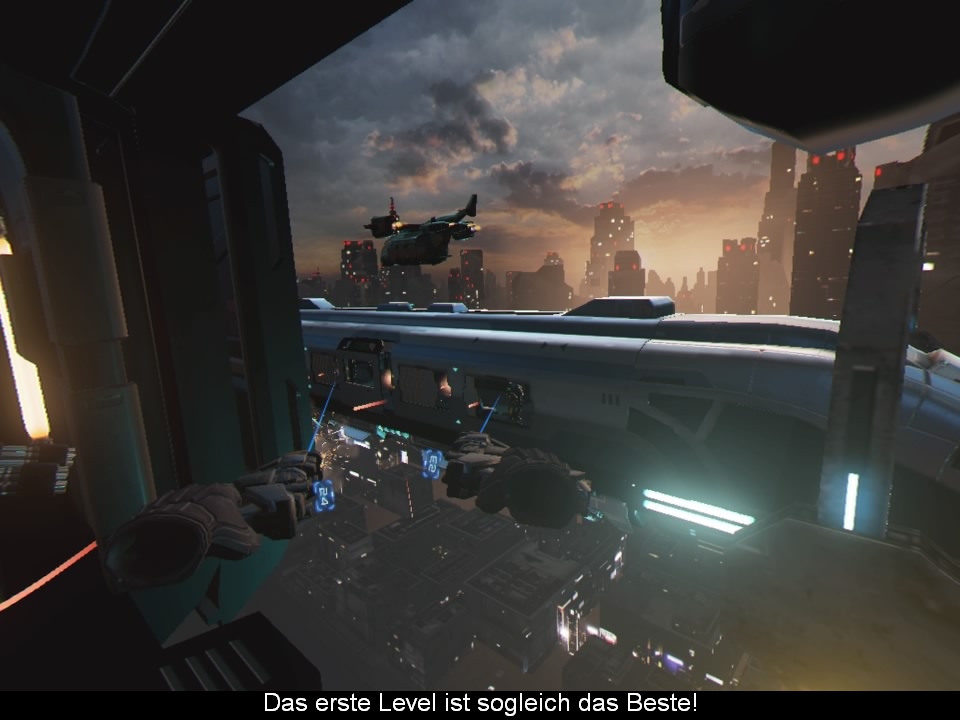 Das Science-Fiction Setting und die Charaktere könnten glatt aus einem neuen Time Crisis stammen. Auch das Deckungssystem dürfte Fans der Serie bekannt vorkommen. Eine Story ist allerdings fast nicht existent und dass bisschen was existiert wurde äußerst müde inszeniert. So gibt es nur am Anfang und am Ende der fünf kurzen Level einen kleinen Smalltalk mit den beiden Kollegen. Anschließend wird man ins Hauptquartier gebeamt und wählt dort die nächste Mission aus … gähn. Dabei ist der Anfang wirklich vielversprechend und macht Lust auf mehr. Man startet mit seinem Team in einem Zug hoch über einer Metropole und ballert auf den Zug neben einem. Anschließend springt man auf den gegenüber fahrenden Zug und teleportiert sich nach der Säuberung des aktuellen Bildschirms zum nächsten Spot, wo die Action weitergeht. Später geht es dann auch auf das Dach des Zuges. Ab und an findet man beim Umschauen im Level noch bessere Waffen, Handgranaten und Gegenstände zum Werfen. Zudem kann man desorientierten Gegnern noch mittels kinetischer Kräfte den Rest geben um Extrapunkte zu erhalten. Leider fällt die Inszenierung nach dem starken Start ziemlich ab und die Action führt einen in den weiteren Levels durch müde und austauschbare Gänge mit den immer gleichen Deckungsmöglichkeiten. Apropos in Deckung gehen. Dies geschieht mittels echtem Ducken, was allerdings nicht sonderlich gut funktioniert und man dennoch oft getroffen wird. Mehr Aussenbereiche hätten “Mortal Blitz” zudem mehr als gutgetan! Ganz nebenbei bekommt man keinen einzigen Endgegner zu Gesicht. Ein No Go in solch einem Spiel und unverständlich, da die Gear VR Fassung dickere Gegner bietet! Abseits der “Kampagne”, wo man zwischen drei Schwierigkeitsgraden wählen kann, findet man nur noch einen tristen Trainingsmodus mit 50 Leveln. Nach dem Durchspielen kommt allerdings ein Pop Up, wo neuer Content angekündigt wird. Bleibt zu hoffen, dass dieser dem 20€ teurem Spiel kostenfrei hinzugefügt wird.
