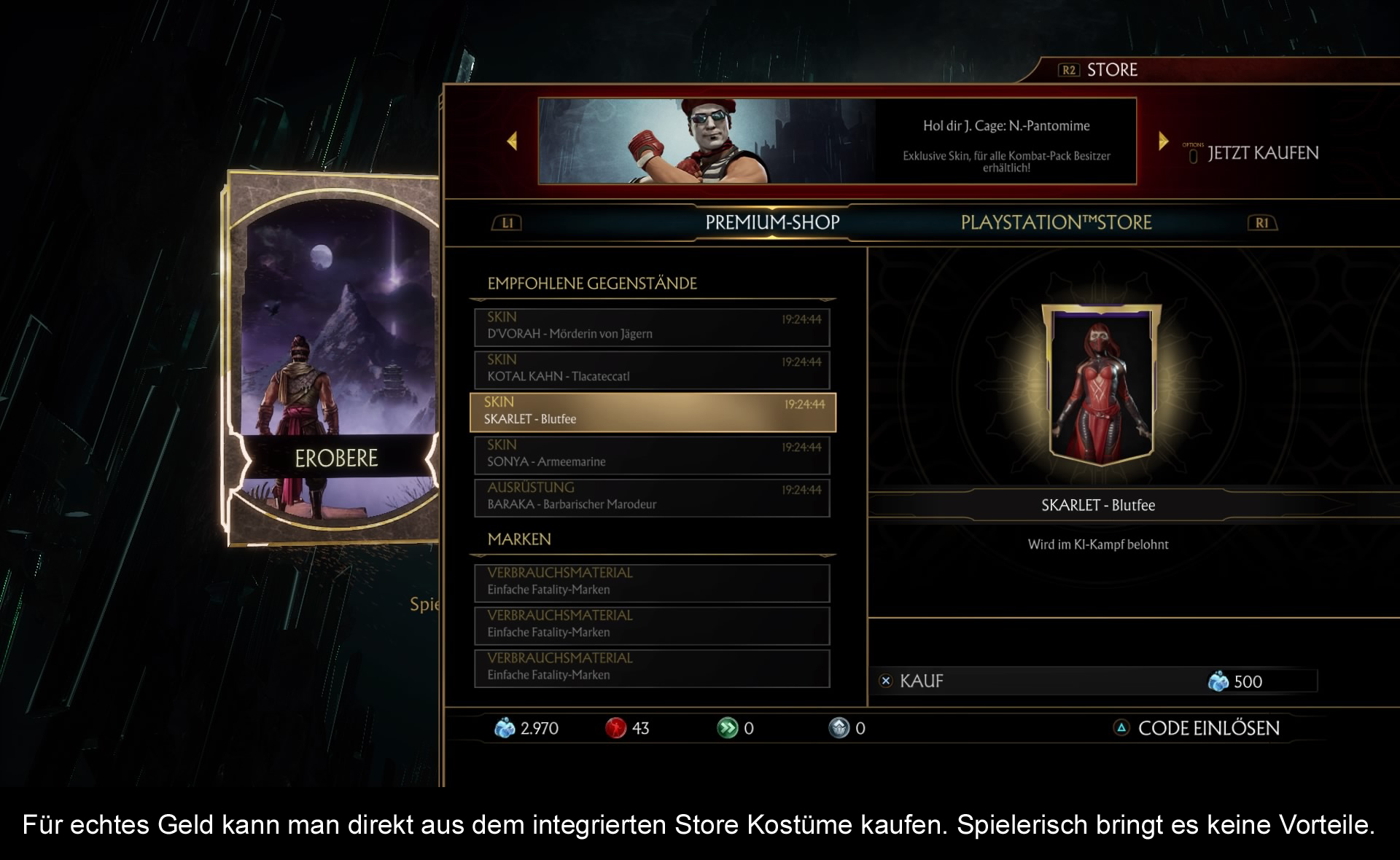Was ich bis jetzt ausgelassen habe, ist der große Minuspunkt von Mortal Kombat 11. Das vollkommen sinnlose und zeitintensive Grinding System! Glücklicherweise schreibe ich das Review nachdem Patch 1.03 draußen ist und die Probleme größtenteils behoben wurden! Wie bereits erwähnt, schaltet man viele Ausrüstungsgegenstände in der Krypta frei. Neben diesen Gegenständen findet man auch Verbrauchsgegenstände, die man im Kampf einsetzen kann und Verstärkungsgegenstände für die Ausrüstung. Jeder der erspielten Ausrüstungsgegenstände bekommt Erfahrungspunkte. Dadurch schaltet man einen Slot frei, um verschiedene Juwelen anzubringen. Diese bringen besondere Vorteile im Angriff, Verteidigung und so weiter. Jedoch werden diese Slots zufällig generiert und es gibt sechs unterschiedliche Juwelenarten, und das für jeden Charakter. Wer gezielt seine Figur ausbauen will, hat hier keine Freude. Auch waren anfangs die Türme der Zeit völlig unspielbar. Die KI war zu stark und man wurde konstant mit einer Vielzahl von Kampfmodifikatoren konfrontiert. Diese unterbrachen nicht nur Kombos, sondern lähmten, vereisten die Figur viel zu Lange. Da am Ender der Türme oft ein Brutality zu erspielen war, ging die Community über, vorgefertigte KI-Kämpfer zu nutzen und man spielte die Türme somit nicht mehr selber. Dadurch ließ man quasi den Computer für Koins, Herzen und Seelen grinden. Denn diese drei Währungen braucht man, um Dinge in der Krypta freizuschalten. Herzen kann man zudem nur mit Fatalaties und Brutalities erspielen, welche sich doch schnell abnützen. Besonders irrsinnig sind die Charakter-Türme: Hier wurde man vor Aufgaben gestellt, wie führe 100 Wurfangriffe aus oder “vollführe 50 Flawless Victorys”! Der Aufschrei der Gemeinde war somit definitiv nicht unbegründet. Die NetherRealm Studios versuchten also den klassischen Einzelspieler länger zu binden und zu motivieren. Aber sind wir doch mal ehrlich. Jeder hat seine 2-3 Lieblingsfiguren auf die man sich konzentriert. In den letzten Teilen konnte man dank YouTube und diversen Lösungsanleitungen gezielt alles freischalten, was nun aber anicht mehr möglich ist. Habe ich eigentlich erwähnt, dass die Krypta für jeden Spieler einzeln generiert wird und dadurch der Inhalt immer unterschiedlich ist? Ihr seht, das komplette System ist in die falsche Richtung gewandert. Statt Spieler zu motivieren, frustriert man diese nur und man kann recht schnell den Spaß am Spiel verlieren. InJustice 2 hatte ein ähnliches System, doch war dies bei weitem verständlicher, auch wenn es seine eigenen Probleme hatte.