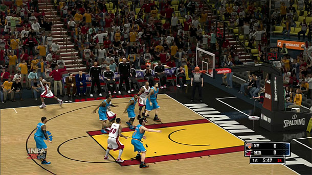 Schon im Intro sieht man, dass der diesjährige Fokus des Spiels ganz klar auf den aktuellen MVP (Most Valuable Player) Lebron James liegt. Ein kleines Video, präsentiert von LBJ persönlich macht den Spieler heiß auf die neue Saison. Im Hauptmenü angekommen, wird man direkt erst mal mit der größten Neuerung des Spiels konfrontiert. Die Rede ist natürlich vom neuen „Path to Greatness“ Modus, wo der Spieler in die Rolle von Lebron James schlüpft. Es stehen zwei Szenarien zur Auswahl. Entweder entscheidet man sich seine Karriere bei den Heat fortzusetzen, um eine Dynastie aufzubauen oder man wechselt den Verein und führt einen anderen Club zu Ruhm und Ehre. Entgegen aller Befürchtungen spielt man jedoch nicht sämtliche 82 Spiele + PlayOffs einer Saison. Stattdessen absolviert man nur ausgewählte Partien, die zusätzlich noch mit einer kleinen Hintergrundgeschichte ausgeschmückt werden. Alles in allem ist der neue Modus eine gelungene, wenn aber auch unspektakuläre Addition zum Spiel, da die Challenges allesamt geskriptet sind und so gut wie kein kreativer Freiraum zur Verfügung steht.