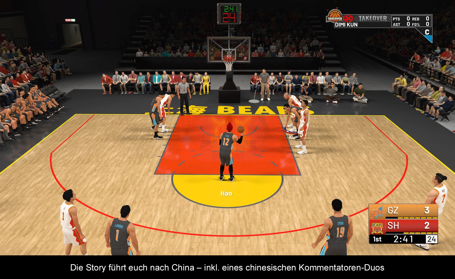 „The Way Back“, so der diesjährige Name, führt euch als nicht gedrafteten Rookie zunächst in die chinesische Basketball-Liga. Ab hier beginnt eure Underdog-Geschichte, die euch über die G-League bis in die NBA führen wird. Umgarnt wird das Ganze durch eine solide Hintergrundgeschichte und interessanten Charakteren, die ein bisschen an die Protagonisten in den Story-Modi von EAs Sportspielen erinnert. Zwar wirken die Dialoge zwischen eurem Spieler und den Gastcharakteren oftmals etwas zu dramatisch und überspitzt, aber dennoch ist das Wechselspiel nicht halb so albern oder absurd wie in den vorherigen Teilen. Doch umso länger man spielt, desto weniger spielt die Geschichte später eine Rolle. Denn sobald man es in die NBA geschafft hat, beginnt der wahre Grind bzw. die wahre Schleiferei. Ob das mit oder ohne Microtransactions geschehen soll, liegt an euch. Zwar behauptet 2K, dass das Hochleveln eures Charakters in diesem Jahr etwas einfacher sein soll, aber dennoch hat es bei mir ziemlich lang gedauert, um genügend Erfahrungspunkte für den nächsten Levelaufstieg zu sammeln. Immerhin ist der Karriere-Alltag relativ spannend, was vor allem an den vielen Randaktivitäten liegt, die es allesamt in der „Neighborhood“ gibt. Hierbei handelt es sich um das Online-Portal von NBA 2K19, wo ihr euer digitales Alter Ego entweder im Fitnessstudio weiter verbessern könnt, oder eure Skills auf dem Streetball-Court mit anderen Zockern misst. Lobenswert ist die zentralisierte Struktur der Nachbarschaft, was bedeutet, dass man nicht mehr so lange Strecken zurücklegen muss wie noch im letzten Jahr, um sein Ziel zu erreichen. Schade ist jedoch die Tatsache, dass die eigene Konkurrenzfähigkeit auf dem Online-Parkett tatsächlich von eurem Level abhängt. Und da man relativ schnell auf viele 90er Spieler trifft, ist es zugegebenermaßen doch ziemlich schwer sich auf dem Court einen Namen zu machen. Alles in allem wirkt die „Nachbarschaft“ aber ein wenig ausgearbeiteter und nicht mehr ganz so schleppend wie im Vorjahr, was sich auch in den etwas kürzeren Ladezeiten widerspiegelt.