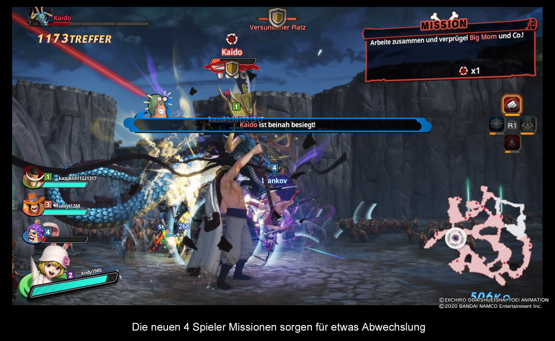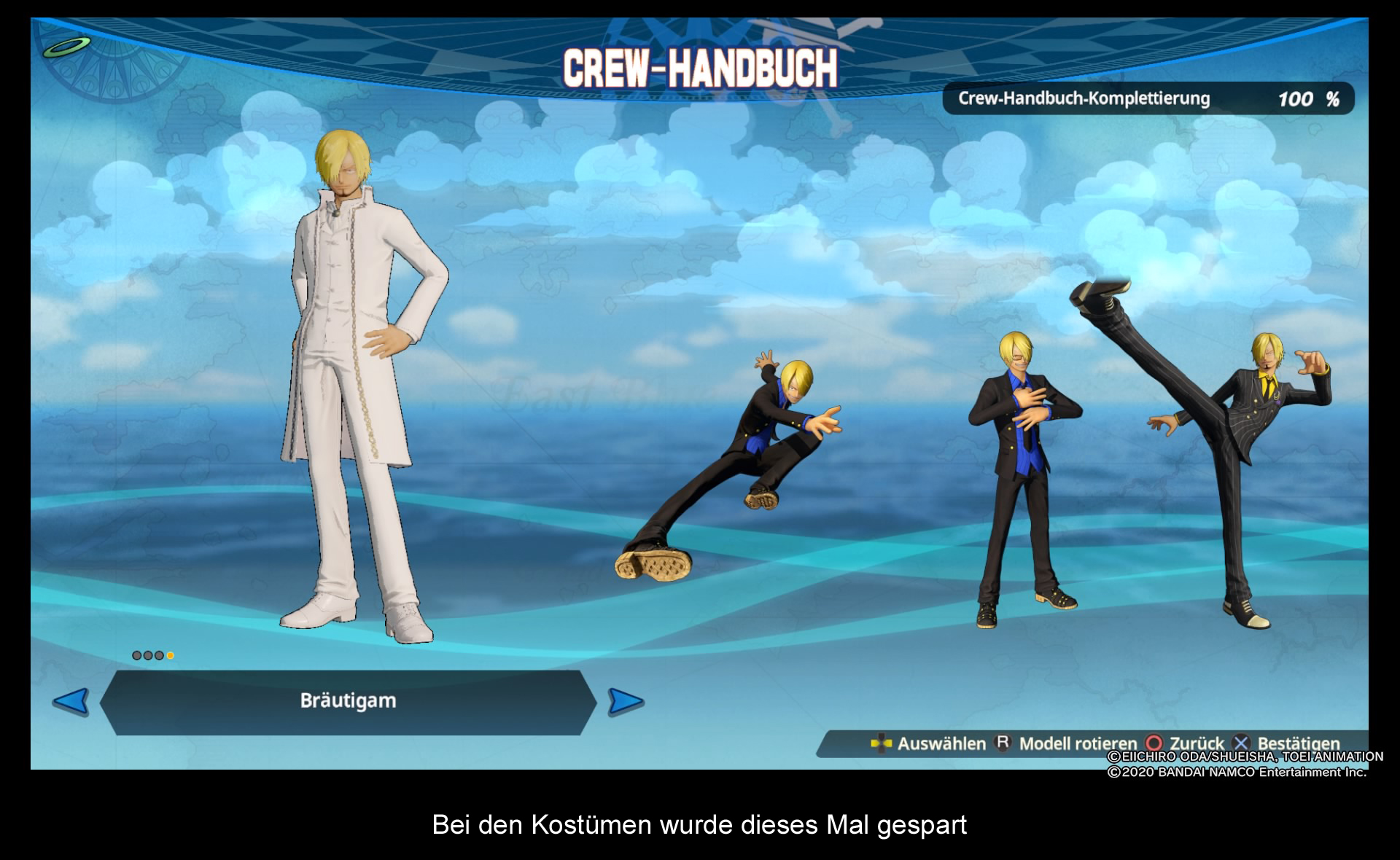 Hört sich fast perfekt an, gäbe es da nicht auch noch die Unterteilung in Klassen. Jede Figur wurde einer Klasse zugeteilt und wird nun in Kampf, Skill, Geschwindigkeit oder Luft Typen unterschieden. Wirkliche Änderungen merkt man jedoch nur bei der letzten Klasse. Diese Figuren nutzen Luftangriffe für ihre Kombos und Fähigkeiten, welche durch die unglückliche Kameraführung und Zielerfassung oft nicht treffen. Was die Charaktere selbst angeht, wurden diese wieder überarbeitet und benötigen etwas Einarbeitungszeit. Fanlieblinge wie Ruffy und Zorro spielen sich gewohnt gut, doch haben Helden wie Franky und Chopper doch ein Downgrade erfahren. Auch Skill-Charaktere wie Lysop und Robin sind nun nicht für jeden Spieler geeignet. Das ist schade, da diese Figuren recht populär sind und der eher langsamere Spielstil nicht für jedermann gemacht ist. „Billig“ hingegen sind die Vinesmoke Brüder, die sich zu sehr gleichen. Andere Helden und Schurken spielen sich sehr gut und bringen die eine oder andere Überraschung mit.