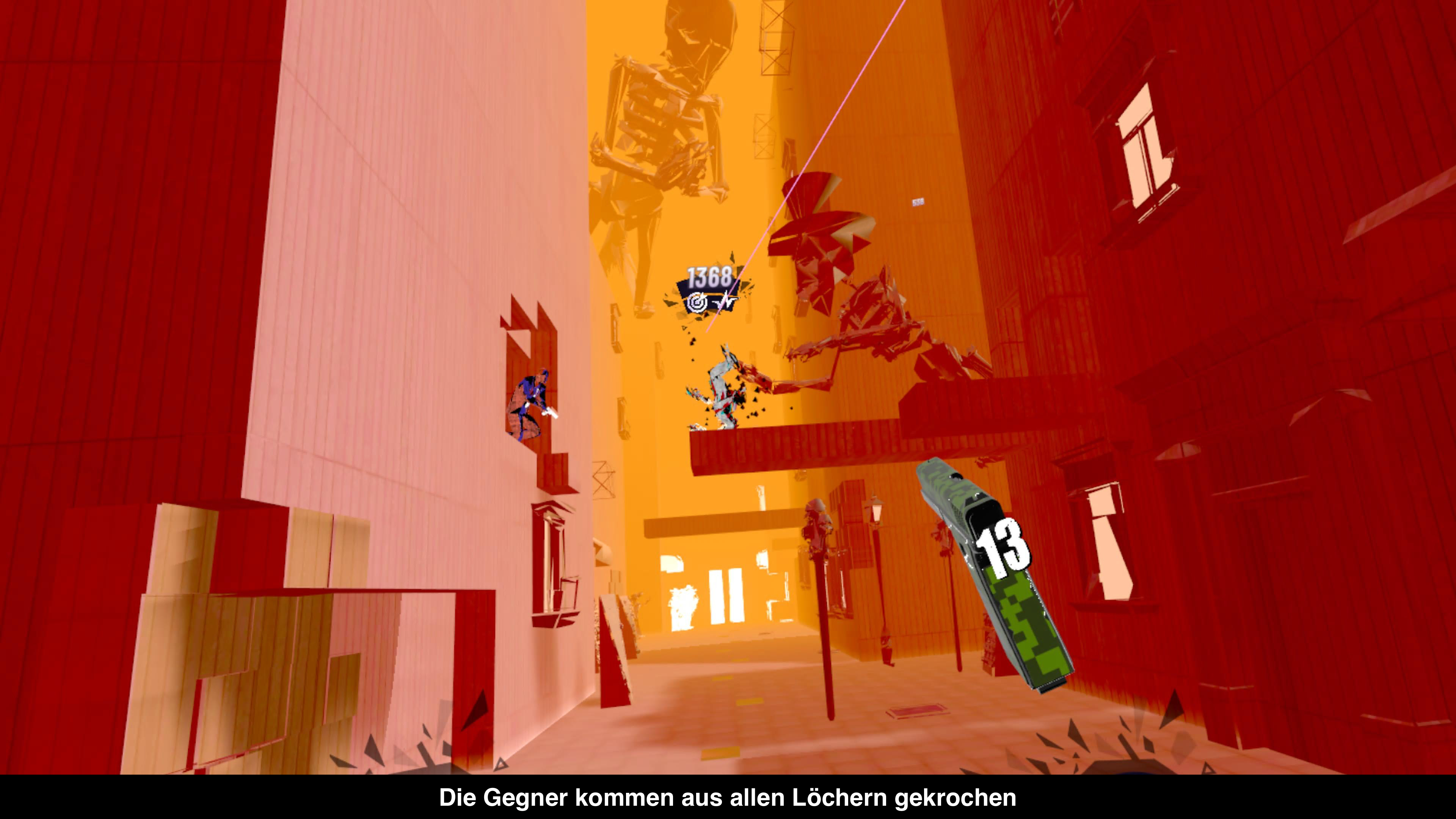 Spielerisch ist Pistol Whip eine geniale Mischung aus dem Rätselshooter "Superhot VR" und einem typischen Railshooter der 1990er. Spielerisch ist die Ballerorgie einfach gehalten inklusive eines gnädigen Zielsystems, was dem Flow allerdings sehr zugute kommt. Gepaart wurde das ganze mit einem Low Poly Look und einem treibenden Soundtrack, der Ohrwurmcharakter besitzt Beides vermischt sich zu einem audiovisuellen Trip der Extraklasse. Die Grafik pulsiert dabei im Takt und auf höheren Schwierigkeitsgraden ist man ordentlich am schwitzen. Die Kugeln pfeifen einem nur so um die Ohren, was dazu führt, dass einem die technisch etwas angestaubte Grafik nicht sonderlich stört. Low Poly und Abstraktheit sind halt fast alterslos.
