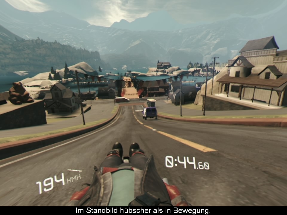 Nach den zwei kurzweiligen Ausflügen in die virtuelle Realität, kommen wir nun zum Rohrkrepierer der Sammlung. Dabei ist die Idee mit einem Board einen Berg herunter zu rasen ziemlich cool und verspricht rasante Action auf fantasievollen Kursen. Leider wird das Potential verschenkt, da die Kurse bis auf ein paar wenige Highlights zum einen wirklich langweilig designt wurden und zum anderen kein Geschwindigkeitsgefühl zustande kommt. Hinzu kommt eine Grafik, welche flimmert und arg verwaschen daherkommt und selbst ein Driveclub besser ausschaut. Zudem ist die Steuerung mittels Kopfbewegungen ziemlich träge und der Controller wäre die bessere Alternative gewesen. Ganz nebenbei hat man nach gut 45 Minuten alles gesehen.