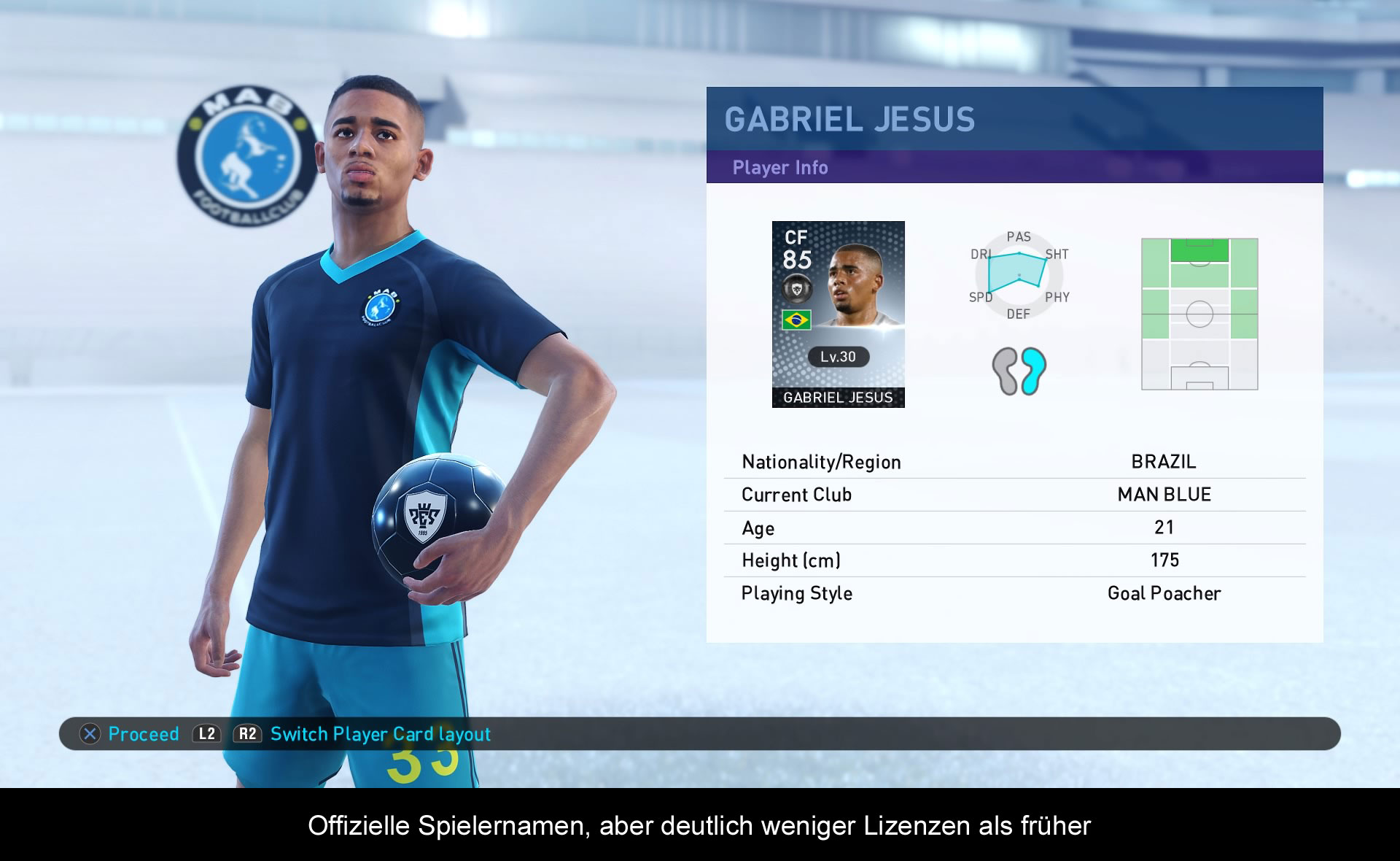 Was das Inhaltsvolumen angeht, hat sich bei PES 2019 im Vergleich zum Vorjahr einiges getan. Denn mit dem Verlust der UEFA-Lizenz, die sowohl die Champions League als auch die Europa League umfasste, fehlen der Serie nun zwei Grundpfeiler, welche die Franchise in den vergangenen Jahren noch so gerade eben über Wasser gehalten haben. Zwar ist es Konami gelungen einige neue Ligen mit ans Bord zu holen – darunter die russische, belgische und einige südamerikanische Ligen – aber dennoch muss man sich eingestehen, dass dies nur ein müder Tropfen auf dem heißen Stein ist. Klar verfügen sowohl die englischen, spanischen und italienischen Teams über die richtigen Spieler, aber dennoch schaut man immer wieder mit einem neidischen Auge auf die FIFA Serie, wo Real Madrid eben nicht MD White heißt. Darüber hinaus ist es erneut sehr enttäuschend, dass es Konami nicht gelungen ist, die aktuellen Transfers mit in das Spiel zu integrieren. So spielt ein Ronaldo zum Beispiel immer noch bei Madrid und nicht bei Juve. Am Meisten stören mich die fehlenden Lizenzen jedoch beim MyClub Modus, der Konamis Gegenüber zu Ultimate Team darstellt. Zum einem muss man als Fan der Bundesliga auf die meisten Spieler der Liga verzeichnen, da Konami lediglich die Kicker anbietet, die entweder bei Leverkusen und Schalke oder bei ihren jeweiligen Nationalmannschaften spielen. Während Kicker wie Hummels oder Lewandowski also als vereinslos dargestellt werden, fehlen Alt-Stars wie Ribery oder Robben komplett. Und auch in Sachen Modi bietet MyClub nicht ansatzweise so viel wie Ultimate Team. Eine eigene Version von FIFA beliebtem Squad Builder sucht zum Beispiel man vergebens. Stattdessen kickt man mit seiner eigenen Mannschaft entweder online oder offline gegen verschiedene Teams, um Punkte zu sammeln, die man später gegen Transfers für neue Spieler benutzen kann. Einen Markt, wo man Fußballer kaufen bzw. verkaufen kann, gibt es erneut nicht. Same old, Same old. Und das trifft auch auf das ehemalige Flaggschiff der Serie zu – Die Master Liga. Auch hier hat sich im Vergleich zum Vorjahr nur wenig getan. Angesichts dieser Stagnation liegt die Vermutung nahe, dass das Budget bei Konami sicherlich ziemlich überschaubar ist. Brandneue Features such man vergeblich, und dies wird wahrscheinlich auch in den nächsten Jahren so bleiben, sofern man weitere Ableger veröffentlichen wird. Immerhin funktioniert wenigstens der Online-Modus ganz gut, was ja auch nicht immer der Fall war. Und auch der Training-Modus ist nicht allzu schlecht dabei, einem die vielen Facetten des Gameplays zu zeigen.