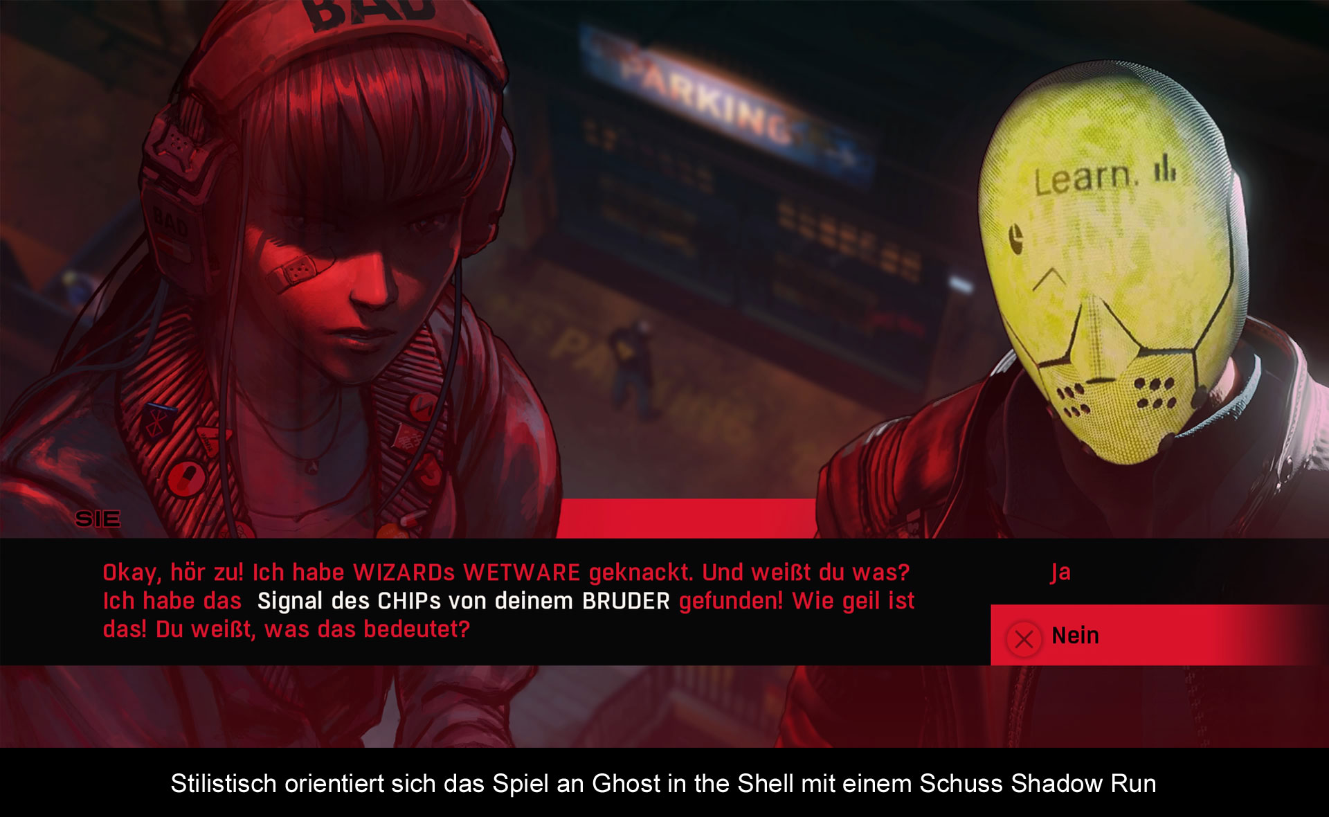 Der Spieler wacht in der Cybermetropole Rengkok im Jahr 2091 auf. Sein Ziel: Den entführten Bruder finden und befreien. Das ist im Großen und Ganzen die Story, die über weite Strecken mysteriös bleibt und bestenfalls zum Ende so etwas wie eine Auflösung findet. Natürlich steckt noch mehr dahinter und das ganze Drumherum ist ordentlich ausgearbeitet, doch letztendlich ist die Geschichte auch hier nur Mittel zum Zweck.
