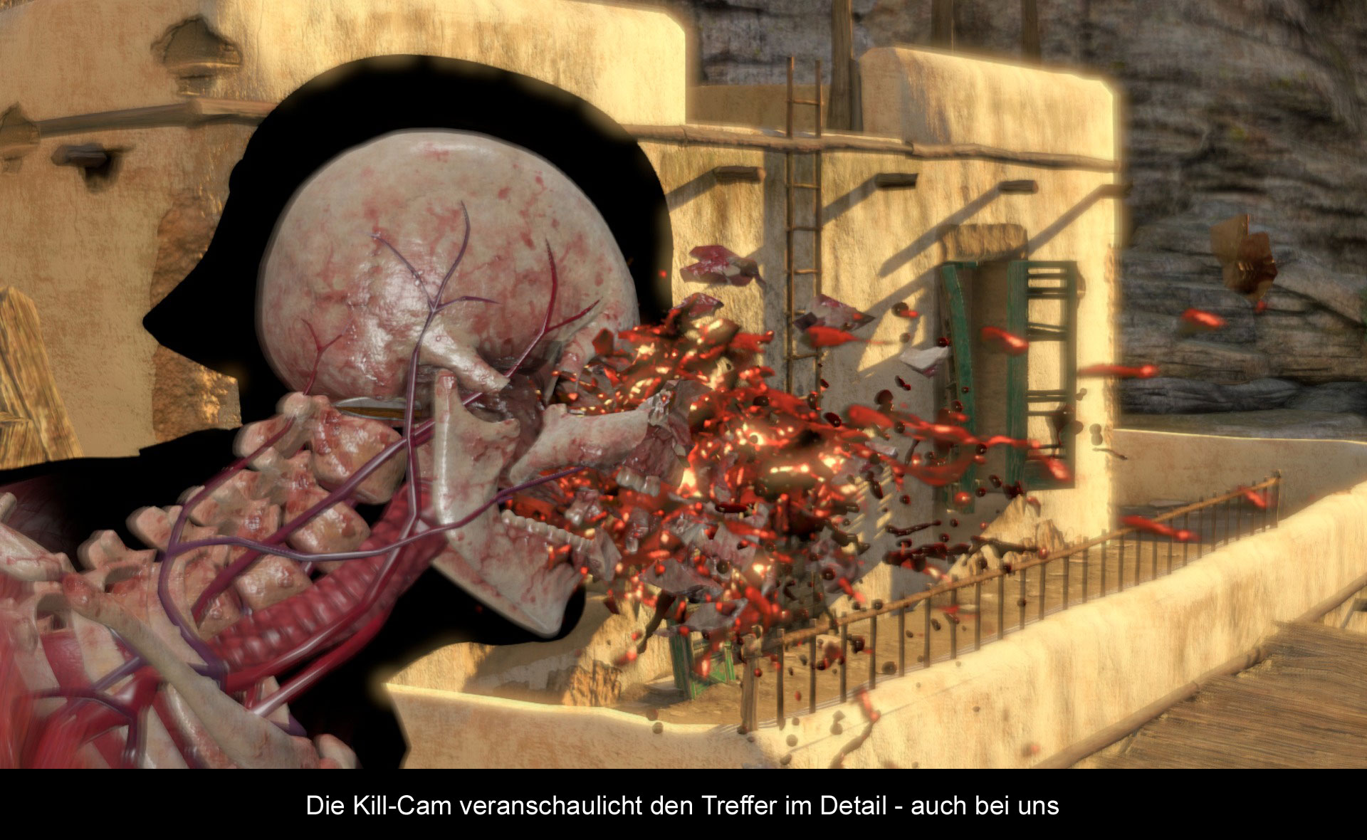 Nichtsdestotrotz ist die maue Story kein Genickbrecher für das Spiel. Dies liegt vor allem am motivierenden Gameplay. Im Mittelpunkt steht dabei euer getreues Scharfschützengewehr mit dem ihr euch so unauffällig, wie möglich durch die 8 weitläufigen Areale bewegt. Und „weitläufig“ ist definitiv keine übertriebene Beschreibung. Jedes Level bietet verschiedene Wege und Unterschlüpfe, von wo man seine Feinde aufs Korn nehmen kann. Obwohl man unter anderem auch auf Maschinengewehre, Pistolen, Granaten und Fallen zurückgreifen kann, liegt der Fokus natürlich auf dem Gewehr. Und wie auch in den vorherigen Spielen sorgt ein gut gezielter Schuss für das Erscheinen der berühmt-berüchtigten „Kill-Cam“, die den Weg eurer Kugel bis ins kleinste Detail nachverfolgt. Und dies beinhaltet auch den Aufprall im gegnerischen Körper, der aufgrund des bekannten Röntgenbildes recht schmerzvoll aussehen kann. Ähnlich, wie zum Beispiel in Mortal Kombat 9 sieht man unter anderem, wie die einzelnen Knochen sprichwörtlich explodieren oder die Gedärme auseinandergerissen werden. Obwohl man sich über die Brutalität der Szenen streiten kann, lässt es sich nicht von der Hand weisen, dass insbesondere dieser Effekt ein wichtiger Faktor für die Popularität der Spiels ist.