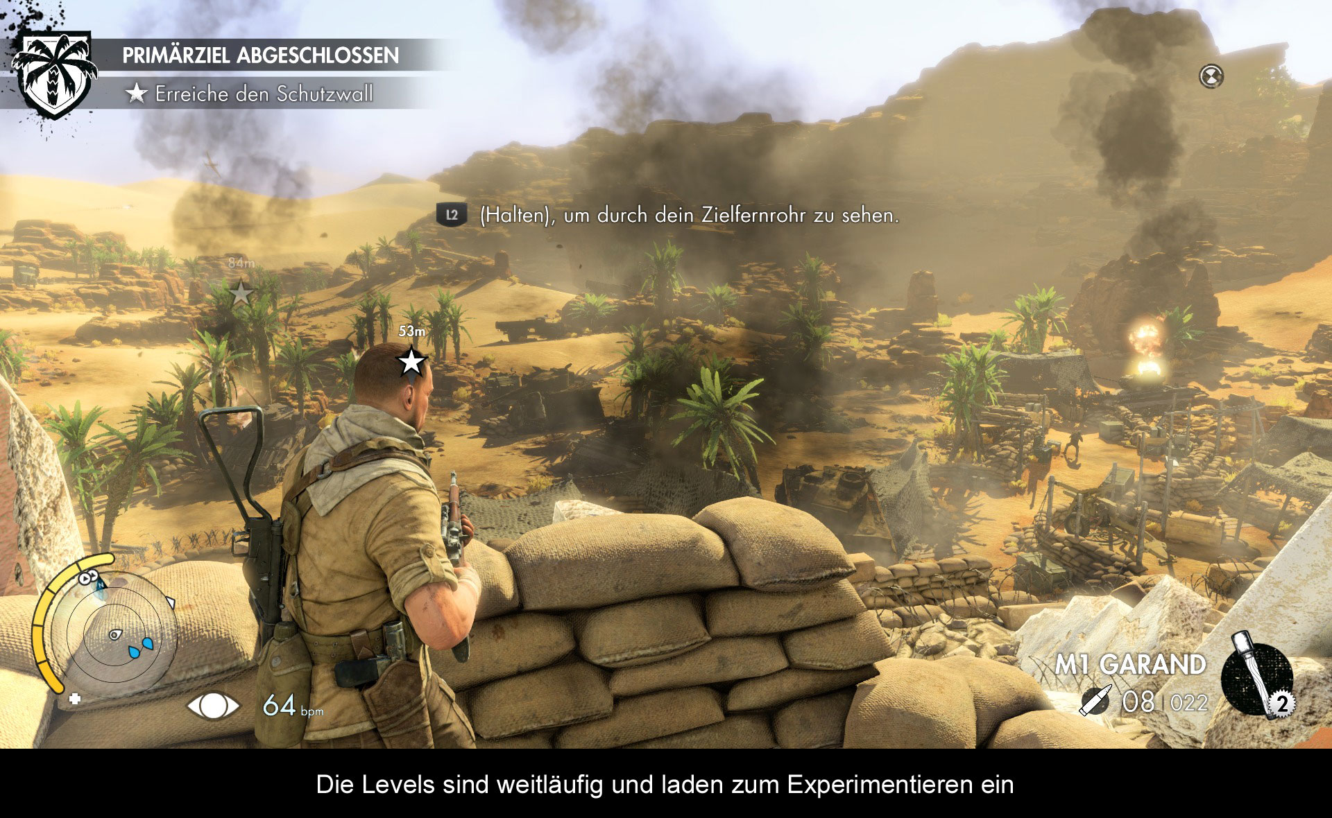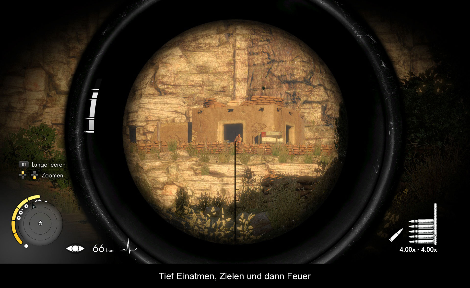Je nachdem für welchen Schwierigkeitsgrad man sich zu Beginn der Kampagne entscheidet, verändert sich auch die Präzision eures Gewehrs. Während Fehler im einfachen Schwierigkeitsgrad noch oftmals vergeben werden, muss man auf den höheren Stufen weitaus mehr Faktoren, wie zum Beispiel die Zielgenauigkeit, die Entfernung und die Atemwege im Auge behalten.