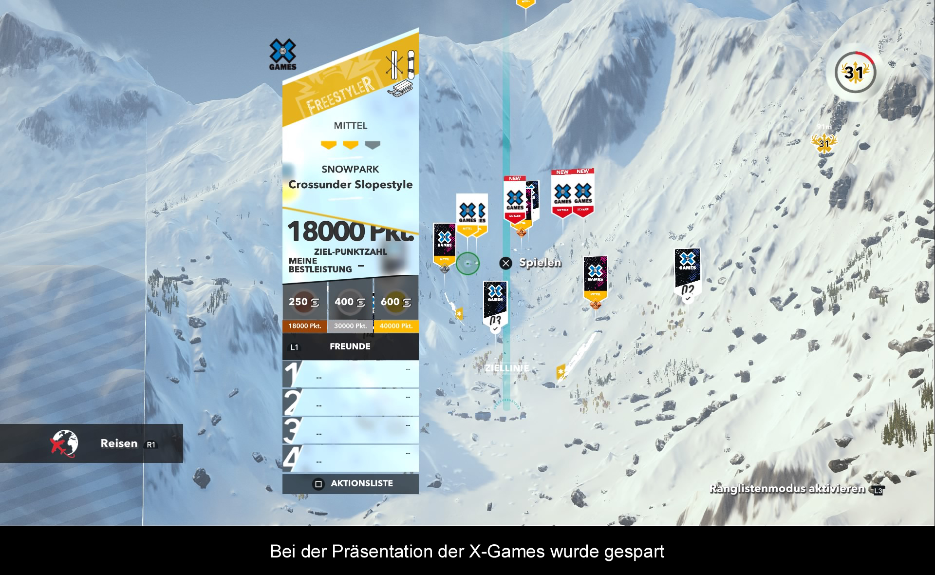 Der letzte große DLC „Road to Olympics“ konnte mit einer hervorragenden Präsentation begeistern. Zahlreiche Spitzensportler erzählten aus ihrem Leben. Auch wurde der eigene Werdegang in eine kleine Kampagne eingebettet. Nichts von dem ist mehr in diesem DLC zu finden. Stattdessen gibt es einen sturen Ablauf mit Training und Wettkampf. Im Training lernt man ein paar Kniffe, was einem im Wettkampf erwarten wird. Dann darf man sich in der Halfpipe und den Snowparks beweisen und sich einen Platz auf dem Treppchen sichern. Die Präsentation ist hier ähnlich wie beim Olympia DLC. Nur hat man die olympische Fahne mit der X-Games Fahne ausgetauscht. Auch beim Moderator haben die Entwickler nur ein paar Textzeilen geändert. Ansonsten gibt es hier keine großen Neuerungen. Was man aber merkt, ist der deutliche Anstieg im Schwierigkeitsgrad. Für Veteranen definitiv eine Abwechslung, alle anderen beißen sich daran die Zähne aus. Neben den neuen X-Games Parks bringt der DLC auch 90er Jahre Outfits und ein paar passende Musikstücke dazu. Nichts was man benötigen würde, zudem gibt es auch den Rocketwing als neues Sportgerät. Im Gegensatz zum normalen Gleitschirm sind hier Raketendüsen angebracht und man kann mit ihm frei durch die Welt fliegen. Wenig realistisch, aber optimal zum Erkunden der Spielwelt.