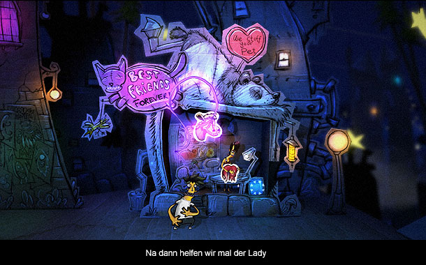 Kernelement des Spieles ist das Gedankenlesen. Beinahe jeder Charakter hat ein Bedürfnis, was erfüllt werden muss. Dies geschieht in dem ihr bestimmte Reaktionen in der realen Welt auslöst und Objekte aus der Umgebung oder aus den Gedanken entnehmt. Ein kleines Bespiel: Um an den fiesen Ganoven voreizukommen, müsst ihr den kleinen Hund mit Zähnen ausstatten, welche man von einem Haustierkrokodil bekommt, was wiederum erst mit einem bestimmten Objekt angelockt werden muss. Auf diese Art werden die meisten Probleme in der Welt gelöst. Dank der Klebehand und dem Touchscreen könnt ihr ohne Probleme diese Dinge greifen und Punkt genau platzieren. Damit man es dem Spieler leichter macht, kann immer nur ein bestimmtes Objekt auf einen vordefinierten Punkt gesetzt werden. Das ist auch der größte Kritikpunkt des Spiels. Nur im letzten Level darf man Sachen auf unterschiedlichen Objekten platzieren. Neben diesem Puzzlespiel, sind auch die Sprungkünste gefragt. Ray wird in manchen Levels gejagt. Durch Sprünge auf Plattformen kann man seinen Verfolgern entkommen. Diese Passagen lockern die Rätselei auf und sorgen für Abwechslung.