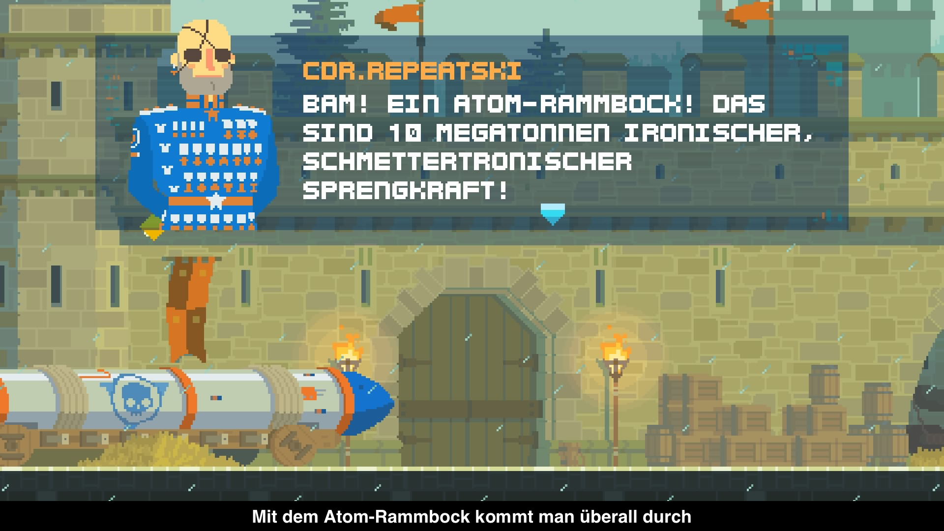 Was das Gameplay angeht, präsentiert sich Super Time Force Ultra als Action-Plattformer aus der Seitenansicht im Stile eines Metal Slug oder Contra. Dementsprechend fällt auch die Steuerung recht gleich aus und ist simpel gehalten. Ihr könnt springen und in acht Richtungen schießen. Die Besonderheit ist aber nun das Zeitreise-Feature. Denn pro Level habt ihr 60 Sekunden Zeit es abzuschließen, was erstmal nach wenig klingt. Doch pro Level hat man auch die Möglichkeit 30 Mal die Zeit zurückzudrehen und die Szenen nochmals zu erleben. Dabei bleibt das „alte Ich“ aber bestehen. Wenn ihr z.B. mit dem alten Ich einen Gegner besiegt habt, könnt ihr zurückreisen und euch das Geschehen in Ruhe aus der Ferne ansehen. Das klingt recht einfach, ist aber gar nicht so leicht, da das ganze gerne mal im Chaos endet, wenn fünf oder mehr Charaktere über den Bildschirm laufen und alle ihre Waffen abfeuern, wird es unheimlich unübersichtlich. Zudem gibt es Stellen, die etwas unglücklich laufen und man findet sich dann quasi in einer Endlosschleife wieder und muss die Zeit weiter zurückdrehen, um nicht ständig von den Schüssen der Gegner erledigt zu werden. Während man die Zeit zurückdreht, kann man auch seinen Charakter wechseln. Denn die Super Time Force besteht natürlich aus mehreren Leuten und jeder hat seine eigenen Fähigkeiten. Im Spielverlauf kann man auch weitere Charaktere finden und die Ultra Fassung auf der PlayStation bietet neben weiteren Charakteren auch noch spezielle Personen, wie Sir Galahad aus The Order: 1886, der Reisende aus Journey oder Sony Worldwide Studios Präsident Shuhei Yoshida, der mit seinem Handy Twitter-Nachrichten verschickt und so gegen die Gegner kämpft. Neben ein paar Collectibles und mehreren Welten mit je vier Leveln, gibt es leider nicht viel zu tun.