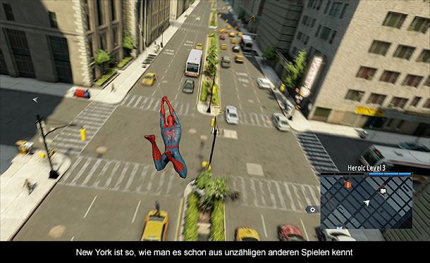 Obwohl die Verpackung des Spiels das PS4 Symbol zeigt, überrascht das In-Game Geschehen von „The Amazing Spider-Man 2“ mit einer langweiligen Optik, die die neue Wunderkonsole von Sony nur selten zum Schwitzen bringt. Während Spidey noch einigermaßen gut animiert wurde, erinnern die meisten anderen Charaktere an etwas höher aufgelöste PS3 Modelle. Die größte Enttäuschung ist jedoch die Stadt selbst. Dies liegt unter anderem an den langweiligen Häuserfassaden, denen jeglicher Charme des echten New York abfällt. Abgerundet wird die Leblosigkeit der Stadt durch die überraschend leeren Straßen und dem Fehlen eines variablen Wettersystems. Zu guter Letzt möchte ich noch auf die akustische Seite des Spiels eingehen. Hier fallen insbesondere die unzähligen neunmalklugen Kommentare von Spider-Man auf, die bereits nach kurzer Zeit nicht mehr zu ertragen sind. Pro-Tip meinerseits: Ton aus und Untertitel lesen.