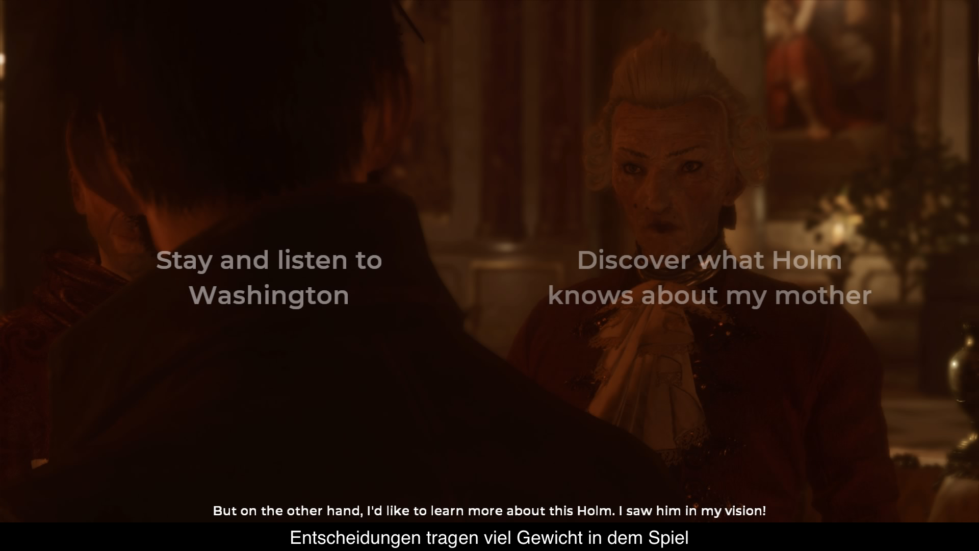 Ganz im Stile anderer narrativer Spiele, gelingt einem dies durch Gespräche mit den einzelnen Leuten. Wie man jedoch schnell merken wird, entpuppt sich dieses Unterfangen schwerer als gedacht. Zwar ist der Name de Richet vor allem aufgrund der Mutter sehr bekannt in dieser geheimen Gesellschaft, aber da man als Sohnemann nicht über den gleichen Ruf verfügt, stehen euch die meisten Charaktere, die man im Schloss von Lord Mortimer findet, eher verschlossen gegenüber. Doch hier findet man bereits den ersten großen „Twist“ von The Council.