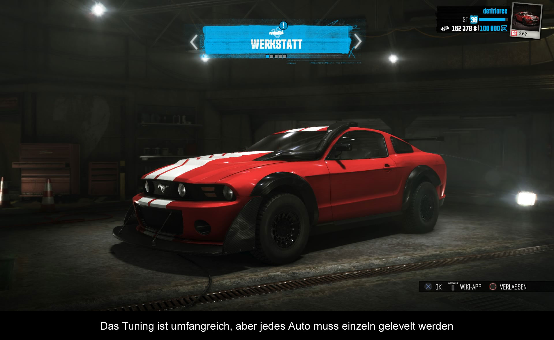 … das braucht man auch, denn obwohl man im Spiel eigentlich keine Geldsorgen haben sollte, ist es auch nicht so, dass man sich nach und nach alle Autos im Spiel kaufen kann. Die meiste Zeit verbringt man also in der Karre, die man sich am Anfang gönnt und levelt diese in den verschiedenen Kategorien auf. Gewinnen tut man übrigens kein einziges Auto, selbst den Bentley, den man ja quasi einem Fahrer während der Story abknöpft, wird lieber irgendwo abgestellt, anstatt in den eigenen Fuhrpark zu wandern. Zudem muss man jedes Auto in jeder Klasse von neuem aufleveln, gewonnene Teile können nicht von einem Auto zum Nächsten übertragen werden. Deswegen kommt man nicht umhin mehr Herausforderungen zu absolvieren, als Rennen zu fahren.