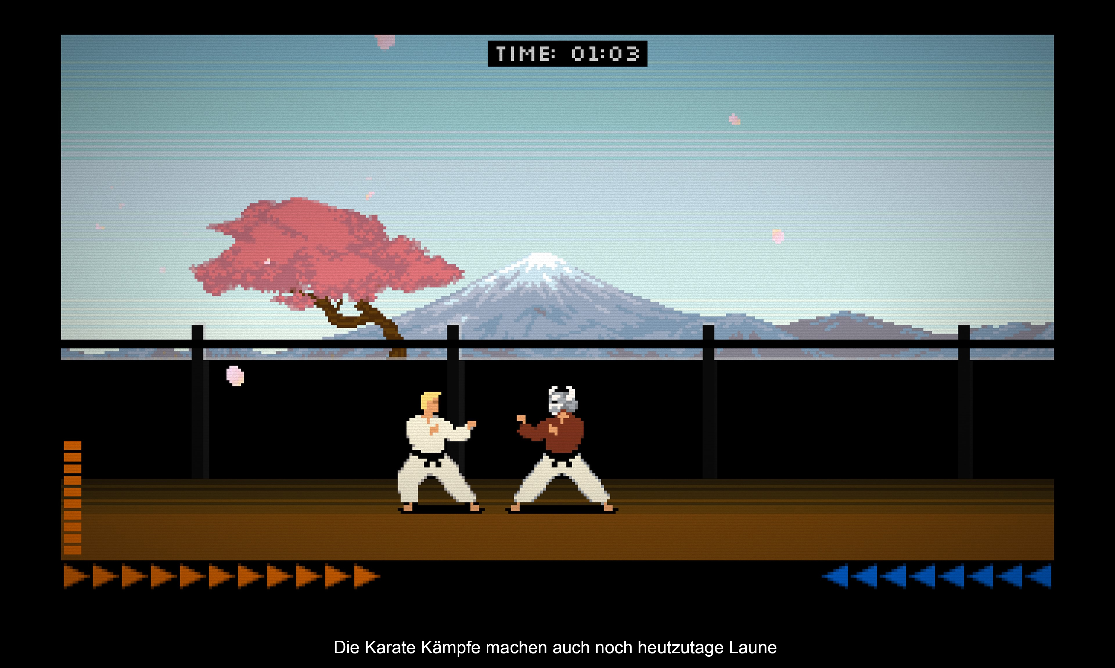 „Karateka“ erschien bereits vor Äonen auf dem Apple II Heimcomputer und wurde danach auf unzählige weitere Systeme portiert. Das Spiel gilt als eines der ersten Kampfspiele und wurde eher nebenbei von dem Universitätsstudenten Jordan Mechner entworfen. Jener Kreative sollte später noch ganz andere Perlen erschaffen.