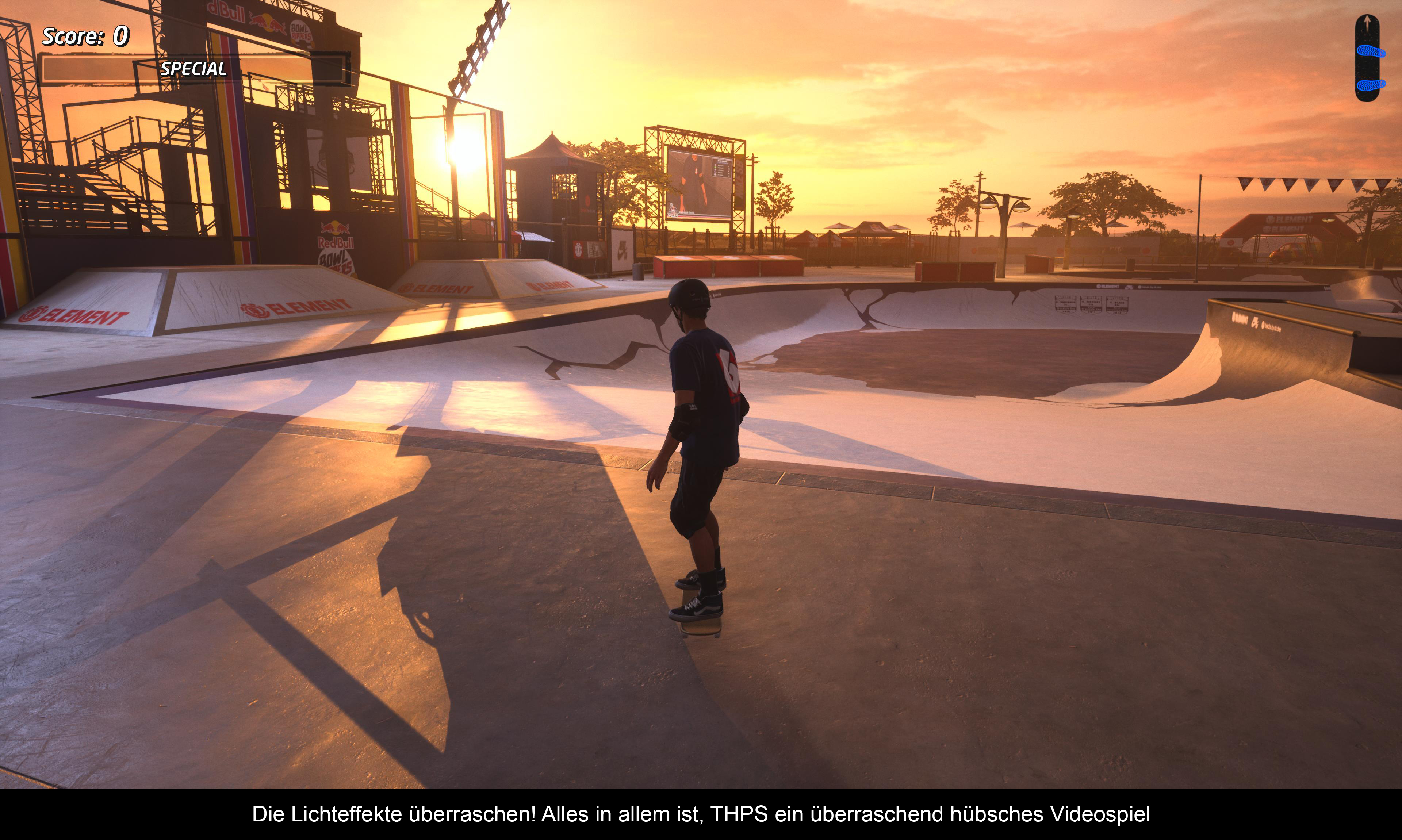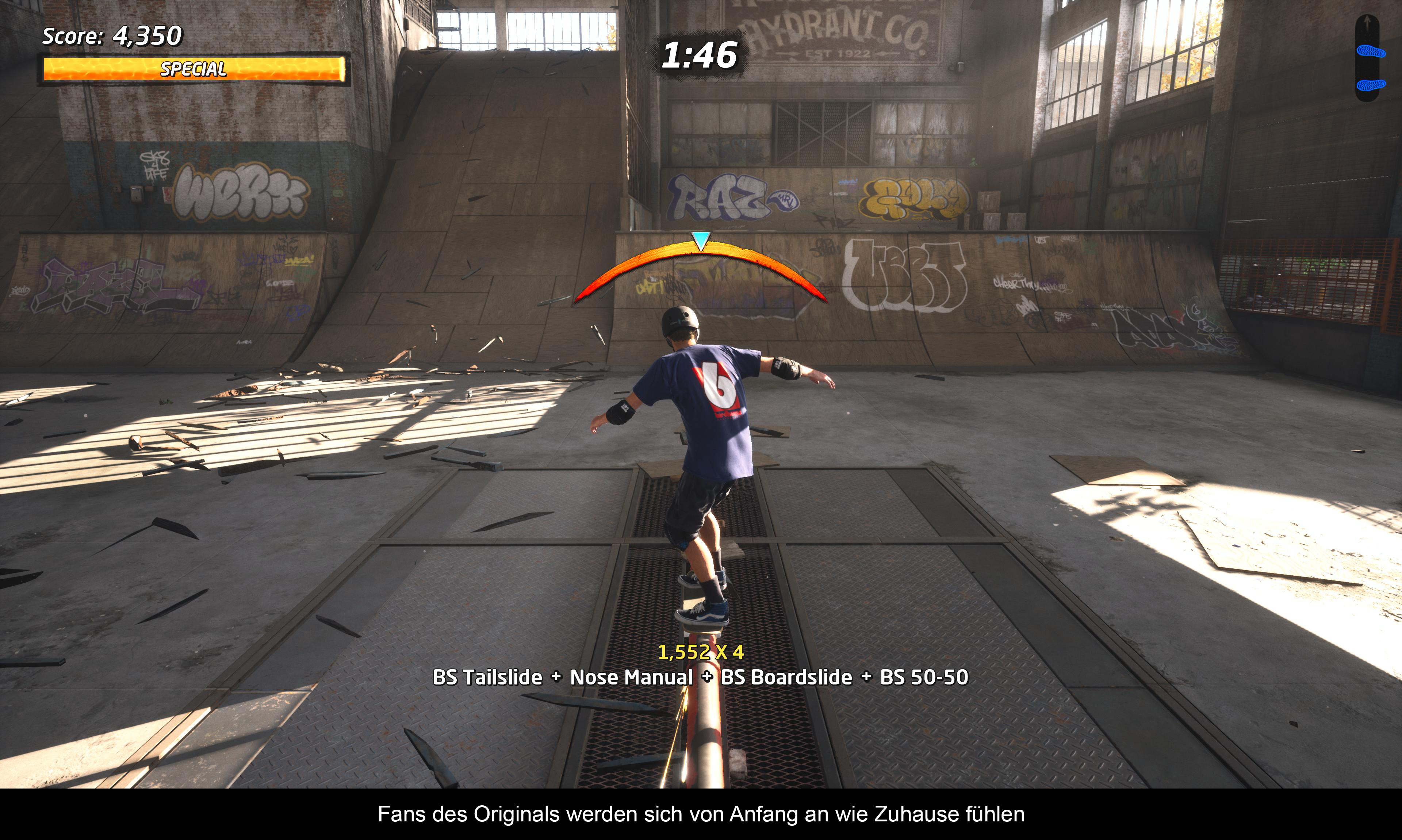 Was den Spielumfang angeht, lässt THPS keine Wünsche übrig. Wo nämlich Tony Hawk 1+2 drauf steht, steckt genau auch dieses drin. Dazu zählen die zahlreichen Level, die zum Teil sogar nochmals aufpoliert wurden. Während das Einkaufszentrum im Original zum Beispiel noch geöffnet war, fährt man im Remake durch einen altbackenen Einkaufskomplex, der seine besten Jahre hinter sich hat. Definitiv eine coole Idee, wenn man an den Untergang der Einkaufszentren in unserer heutigen Zeit denkt. Doch keine Angst: Der Großteil der Umgebungen wurde lediglich in ihrer grafischen Qualität aufgewertet, während die Streckenstruktur unangetastet blieb. Man hat also nicht alles auf den Kopf gestellt.
