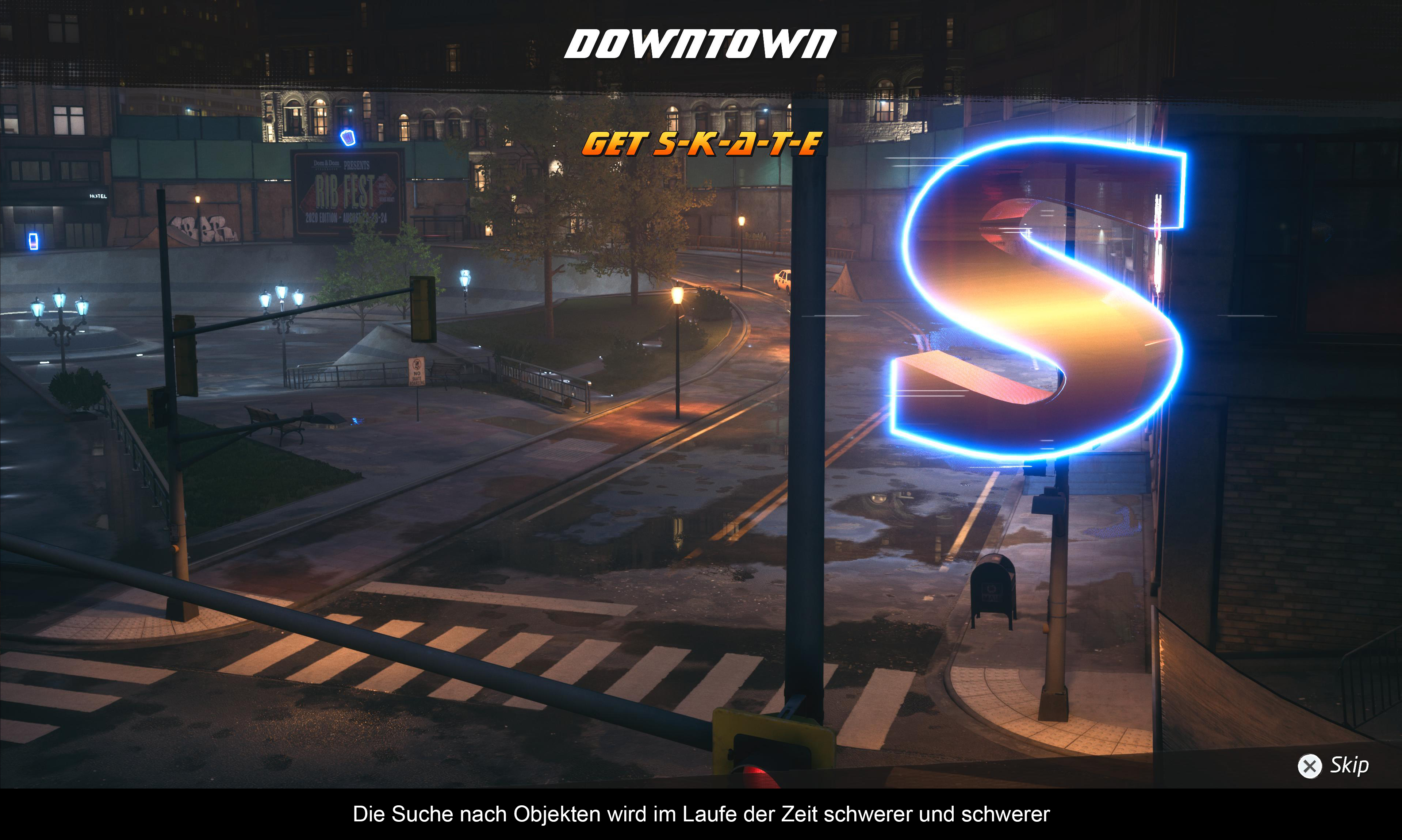 Und auch das Spielprinzip blieb größtenteils unberührt. Um neue Kurse freizuschalten, muss man auf einer Strecke innerhalb von 2 Minuten diverse Tricks oder Konditionen erfüllen, wie zum Beispiel das Erreichen einer Mindestpunktzahl, das Einsammeln von verstreuten Items oder das Ausführen von bestimmten Tricks. Wer jedoch erwartet, vom Spiel an der Hand genommen zu werden, wird schnell eines Besseren belehrt. Aller Anfang ist schwer. Und manchmal muss man halt auch mal in den Menüs nach den richtigen Tastenkombinationen der jeweiligen Skills suchen, oder auch mal auf ein YouTube-Tutorial zurückgreifen, um versteckte Items zu finden. Aber das ist auch OK so. Kein Skateboard-Gott ist bislang vom Himmel gefallen. Wer will kann aber natürlich auch auf sämtliche Hilfen verzichten und selber schauen, ob man die jeweiligen Challenges auch ohne Hilfe erfüllen kann. Zwar stehen einem jeweils nur 2 Minuten zur Verfügung, aber dank der schnellen Festplatte sind die Restarts schnell geladen. Neben dem altbekannten Singleplayer-Modus umfasst das Spiel wie eingangs erwähnt auch noch einen hervorragenden Trainingsmodus, wo man wirklich in aller Ausführlichkeit die Tiefen des Spiels erklärt bekommt sowie einen umfangreichen Skatepark-Editor. Letzter überrascht durch seinen enormen Tiefgang. Eigene Skate-Parks können hier geschaffen und mit der Welt geteilt werden. Wer aber selber nichts bauen möchte, kann diesen Punkt ignorieren und einfach nur die bereits hochgeladenen Strecken ausprobieren. Abgerundet wird das Paket durch einen Offline- und Online-Multiplayer-Modus, wo man gemeinsam mit Freunden auf die Punkte-Jagd gehen kann.