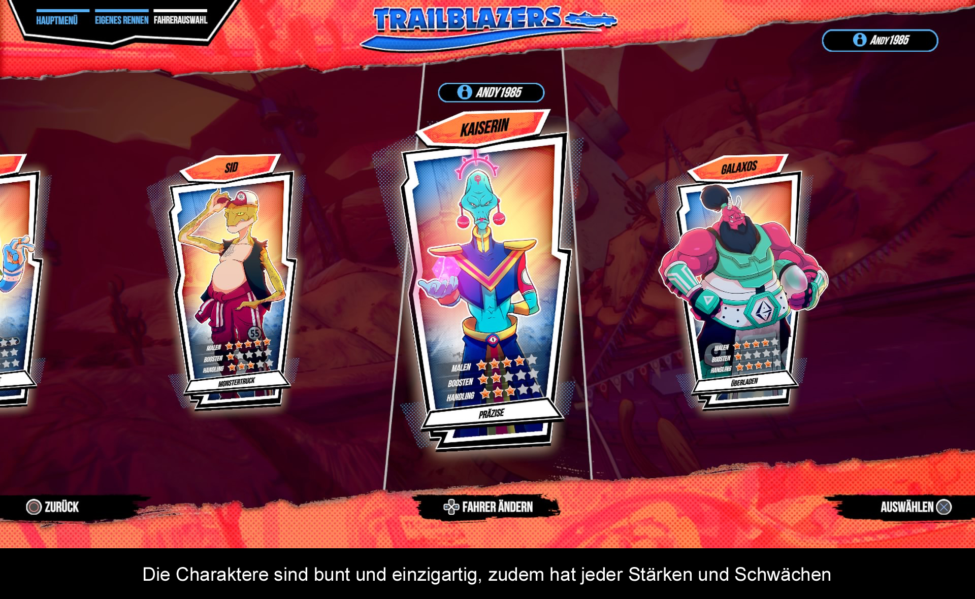 Künstlerisch haben sich die Entwickler von alten Sci-Fi Klassikern und der 50er Jahre Kultur inspirieren lassen. Strecken und Fahrzeuge passen gut in dieses Universum und die exzentrischen Fahrer stechen aus der Menge heraus. Wer wollte nicht mal mit einem Frosch um die Wette fahren. Auch der Soundtrack ist entspannend und gleichzeitig treibend. Die Künstler wie The Derevolutions und Skullee dürften zwar relativ unbekannt sein, aber der Stil fügt sich harmonisch in das gesamte Spieldesign ein. Abgerundet wird das ganze Spiel mit der Handlung, 10 Strecken, 4 Spieler Offline und Online Gameplay. Doch lange verweilt das Spiel nicht auf der Siegesstrecke!