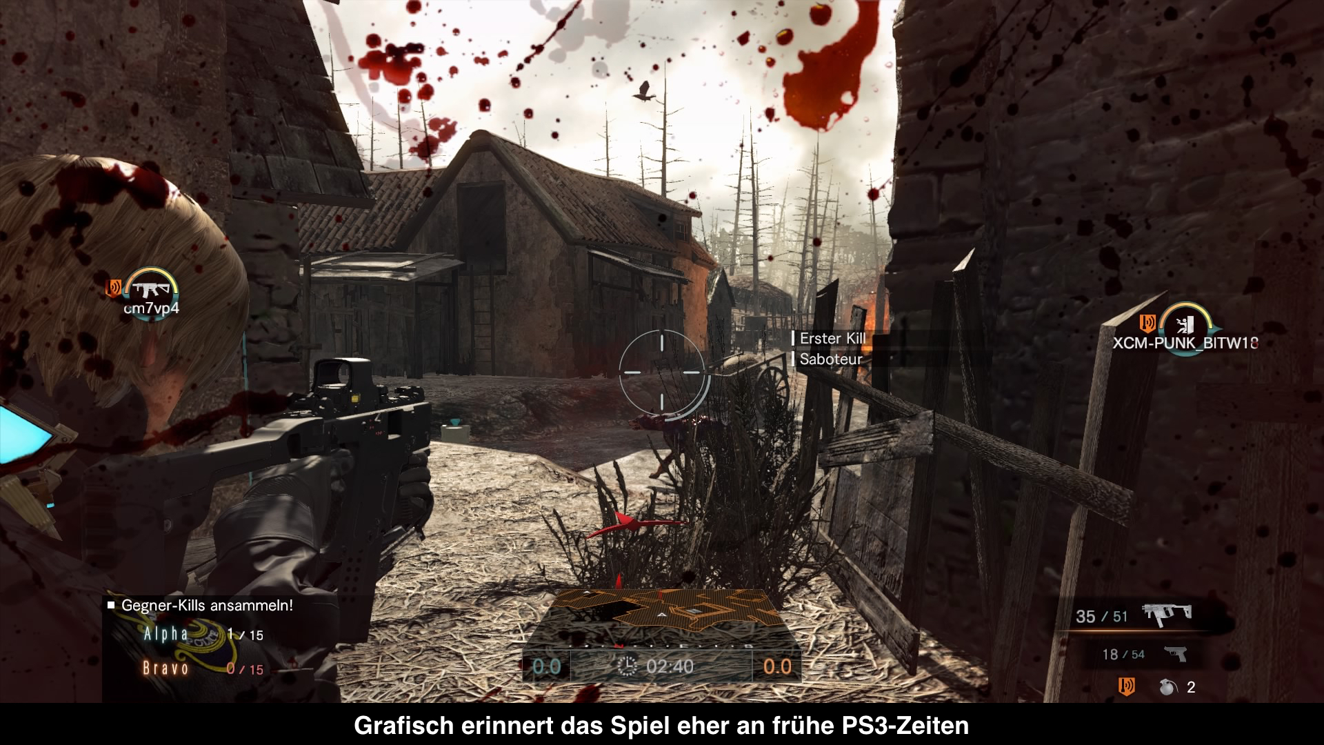 Da es ein reines Multiplayer Spiel ist, fällt der Umfang schon am Anfang deutlich geringer aus. Bei einem Preis von 29,99€ ist das allerdings auch nicht verwunderlich. Im Spiel sind lediglich zwei Multiplayer Modi enthalten, wovon eines ein 3vs3 Match ist in dem sich beide Parteien bekämpfen und möglichst lange versuchen am Leben zu bleiben. Sollte man sterben muss man bis zur nächsten Runde zuschauen. Im Spectator Modus besteht zumindest die Möglichkeit den eigenen Teamkameraden dementsprechend Befehle zu geben und den Hinweis auf eine der möglichen Positionen, wo sich ein Gegner oder die KI-Gegner in Form von Zombies sich befinden, zu geben. Hier hätte es durchaus auch eine taktische Komponente geben können, allerdings sind die Maps viel zu klein und die Runden auch viel zu schnell vorbei, das sowieso sowas wie Taktik direkt im Keim erstickt wird. Einen Zombie als Schutzschild zu nutzen ist nicht unbedingt sinnvoll, da man beide sowieso erschießt. Es hätte ruhig etwas größer ausfallen können, sowohl die Map-Größe als auch die Spieleranzahl. Mehr Spaß kommt eher im zweiten Spielmodus auf "Multi-Mission". Dort spielen wir innerhalb der fünf Runden verschiedene Modis bzw. haben Aufgaben die wir als Team erledigen müssen. In der einen Runde kann es sein, das wir Jagd auf DNA Proben machen um direkt danach ganz klassisch Kill Confirmed zu spielen, wo Armbänder der Söldner eingesammelt werden müssen. Kontrollpunkte halten und erobern gibt es auch und so hat man abwechslungsreiche Runden, die man nach und nach absolviert. Es kann Spaß machen aber es ist eben auch sehr schnell repetitiv. Durch das Gameplay, was auf Speed und möglichst schnelle Feuergefechte ausgerichtet ist, fehlt schlichtweg die Zeit um sich auf das Gameplay einzulassen. Obwohl die Maps sehr klein gehalten sind und es nicht mehr als drei gegnerische Spieler gibt, stirbt man sehr schnell und das auch relativ häufig.