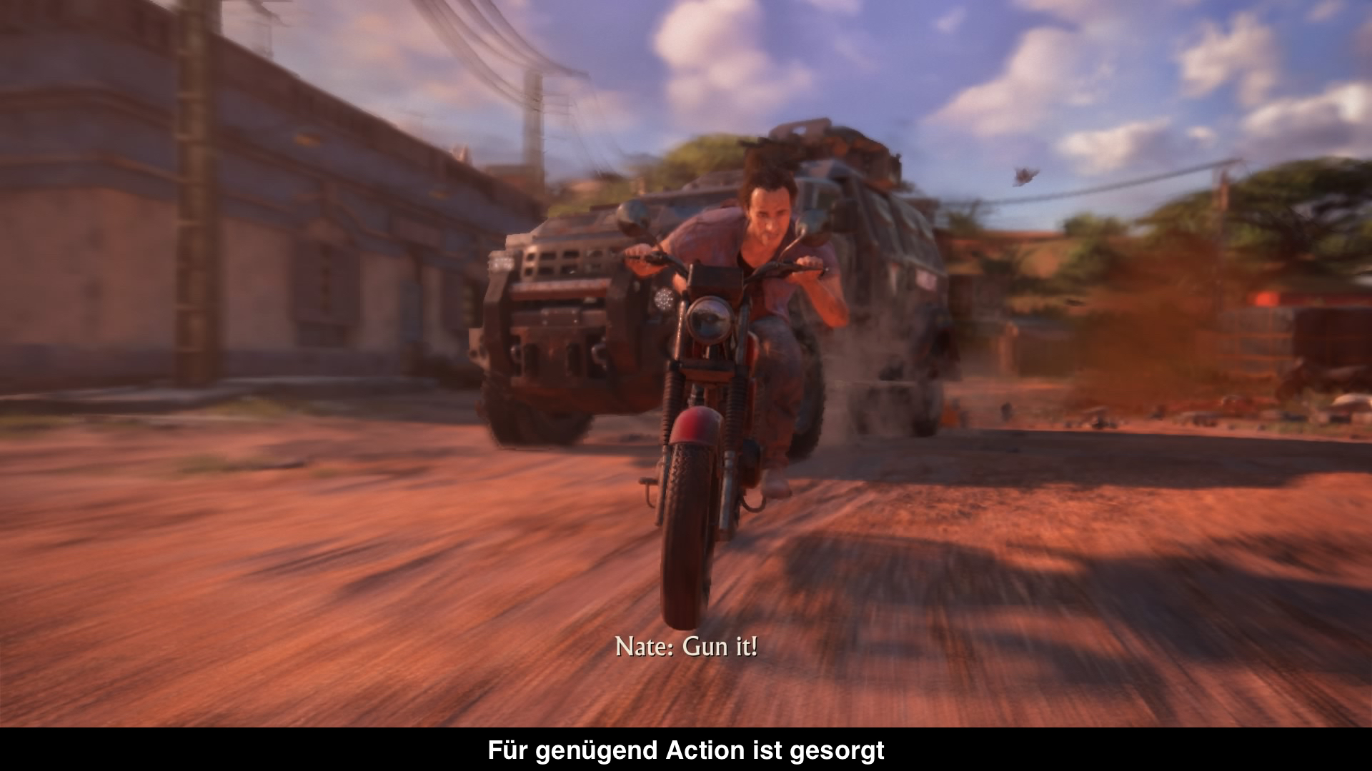 Wer aber wieder einen Action-Blockbuster durch und durch erwartet, könnte enttäuscht werden. Denn in dem neuesten Ableger wird der Adventure Aspekt besonders hervorgehoben. Es gibt immer wieder längere Sequenzen in denen ein kein einziger Gegner begegnet, wo man stattdessen in Ruhe ganze Ortschaften erkundet, Rätsel löst und einfach die Szenerie und Geschichte genießt. Denn während des ganzen Spielverlaufs sprechen die Protagonisten miteinander, erzählen sich mal einen Witz, sprechen über das aktuell geschehene und bringen so die Geschichte voran. Die Rätsel sind dieses mal übrigens ziemlich gut ausbalanciert. Sie sollten nämlich niemanden vor größere Probleme stellen, sind aber nicht ganz so leicht wie früher. Ansonsten gibt es allerlei neue Features, wie ein Seil, womit man sich an Bäumen wie Tarzan hängen kann. Selbst Fahrzeuge gibt es dieses mal, die man selber steuern kann. Dank der offenen Areale darf man deshalb einfach mal die Gegend erkunden.