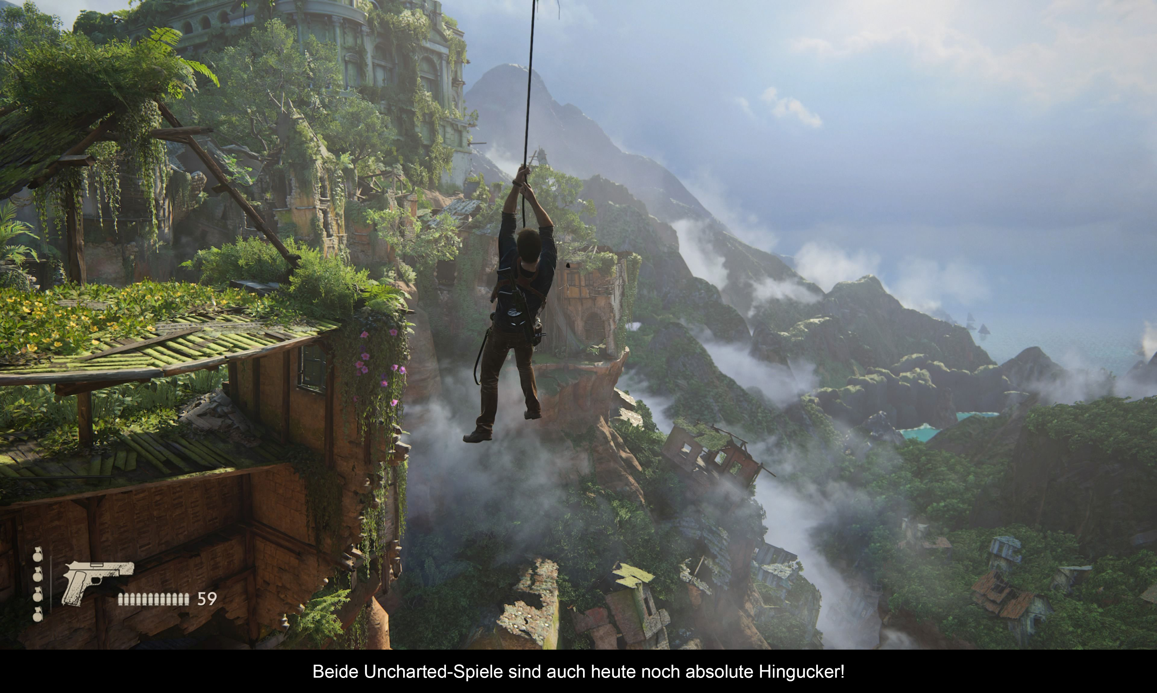 Die „Uncharted“-Reihe dürfte so ziemlich jedem PlayStation-Zocker ein Begriff sein. Mit dem ersten Teil gelang Entwickler Naughty Dog der Sprung vom comichaften Jump'n Run / Action-Adventure („Jak & Dexter“) hin zum erwachseneren „Hollywood“-Blockbuster rund um Schatzsucher Nathan Drake. Drei Titel wurden für die PS3 entwickelt und sind in aufbereiteter Form auch für die PS4 erhältlich (es gibt ja keine Abwärtskompatibilität mit der PS3). Dazu gesellte sich noch ein Spin-Of für die PlayStation Vita („The Golden Abyss“). Teil 4 stellt das Ende der mehrteiligen Reihe dar. Ich will an dieser Stelle auch nicht zu allzu viel darüber philosophieren, denn das Meiste steht ja auch in unserem originalen Test. Doch eines will ich trotzdem sagen: „A Thiefs End“ hatte so seine Pacing-Probleme und wirkt an manchen Stellen etwas langgezogen. Das nahm damals ein wenig die Spannung aus dem Abenteuer und trifft heutzutage immer noch zu. Wesentlich besser, da kompakter, ist der Seitensprung „The Lost Legacy“. Ursprünglich als Teil des Season Passes geplant, wuchs das Projekt immer weiter, bis es ein vollwertiges eigenständiges Abenteuer wurde. Damals zum fairen Preis von knapp 40€. Im Grunde wird zwar das Gleiche geboten, jedoch straffer erzählt und mit weniger Leerlaufzeit (zum Beispiel Kletterabschnitte). Zudem gibt es auch noch eine optionale Aufgabe, die den Spieler für die vielen Strapazen belohnt. Ich mag dennoch auch heute noch beide Spiele, denn sie zeigen, wie viel besser Videospiele gegenüber Spielfilmen sein können. Hier ist man in der Action mittendrin und nicht nur zum Zuschauen verdammt. Und diese Interaktivität verzeiht auch noch manche „Drehbuchschwäche“.