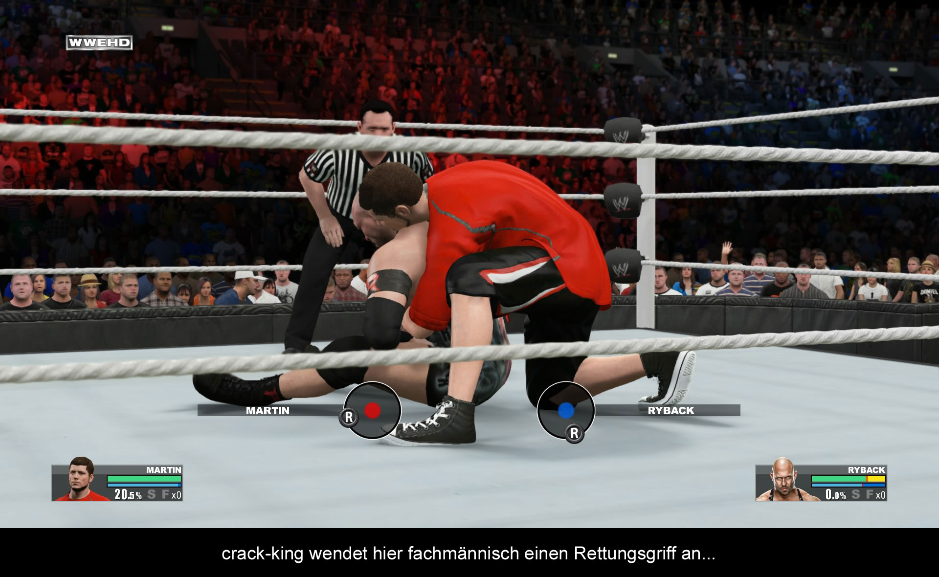 Etwas interessanter ist dagegen schon der 2K Showcase Modus. Hier geht es um die Rivalitäten der Wrestler untereinander. Davon gibt es zwei im Spiel. Einmal zwischen John Cena und CM Punk und „TODODODODO“. In beiden spielt man den Werdegang der Rivalität mit allen denkwürdigen Ereignissen nach und muss während der Kämpfe auch diverse Ziele erreichen, um den Verlauf der Geschichte nachzustellen. Beispielsweise muss man so in einem Kampf gegen John Cena diesen unbedingt durch einen Pinfall besiegen usw. Hier wird das Spielgeschehen dann auch durch die allseitsbekannten Unterbrechungen durch andere Kämpfer aufgelockert und es kommt dem echten WWE Geschehen am nächsten. Unterstützt wird die Geschichte auch noch durch Originalausschnitte aus den einzelnen WWE Sendungen, die schon fast Doku-Charakter haben. Leider gibt es nur die zwei Rivalitäten, die auch noch etwas kurz sind. Mehr gibt es nur gegen Geld, was einen etwas faden Beigeschmack hinterlässt. Da wirkte der „Road to Wrestlemania“ Modus im letzten Jahr deutlich umfangreicher und man hat wieder das Gefühl einen Rückschritt zu machen.