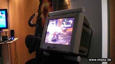 Nachdem wir auch bei SEGA durch waren, führte uns unser Weg zu Konami, die allerdings bis auf ein paar PS3 Trailer zu Metal Gear Solid 4 und Coded Arms: Assault, nur wenig aufregende Sachen zeigten. Am ehesten noch interessierte die PS2 Version von Pro Evolution Soccer 6 und Silent Hill für die PSP. Gerade bei letzterem war jedoch die Konsole abgeschmiert und wir mussten ohne es gespielt zu haben weiterziehen.