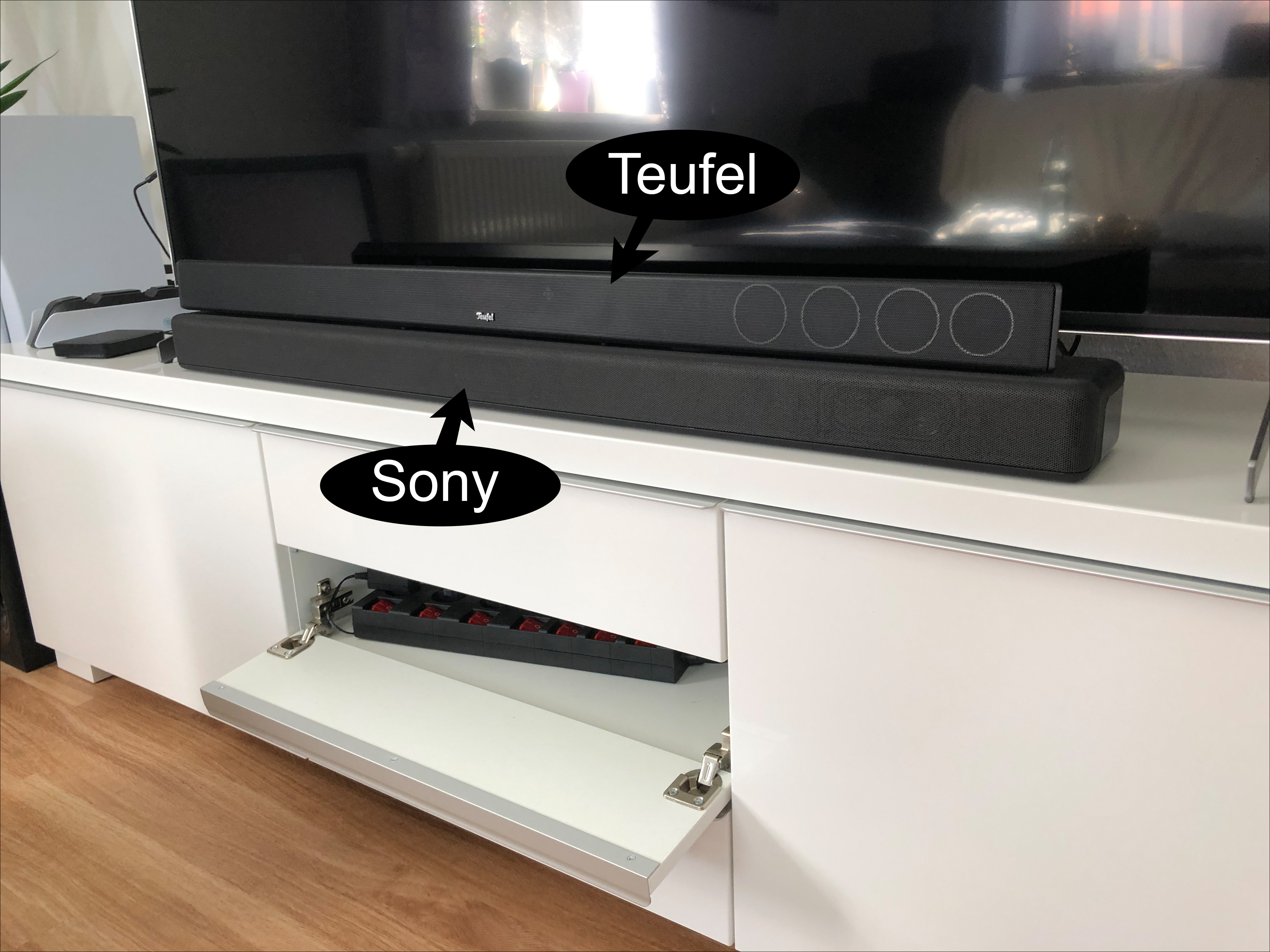 Am 19. November 2020 erschien die PlayStation 5. Mit dem Launch der neuen Konsole, sollte auch ein neuer 4K TV und ein neues Soundsystem her – statt einer 5.1 Anlage mit Receiver, sollte jetzt eine schlanke Soundbar mit drahtlosem Subwoofer in das Wohnzimmer. Zwar war mir bewusst, dass diese Kombination kein richtiges Surround-Sound System mit fünf Lautsprechern und Subwoofer ersetzen würde, aber im Endeffekt ging es um fehlenden Platz, weniger Kabel und eine allgemein aufgeräumte Wohlfühloase. Debattierbar bleibt auch der Surround-Sound – denn bis auf wenige Ausnahmen (Filme / Spiele) fand ich persönlich das Erlebnis bislang nicht gerade überragend und schon gar nicht „Kino-like“. Von daher wurden im Vorfeld bereits einige Kandidaten rausgesucht. Wegen der Pandemie war es damals bereits schlecht möglich, mal im Laden ein paar Soundbars auszuprobieren.