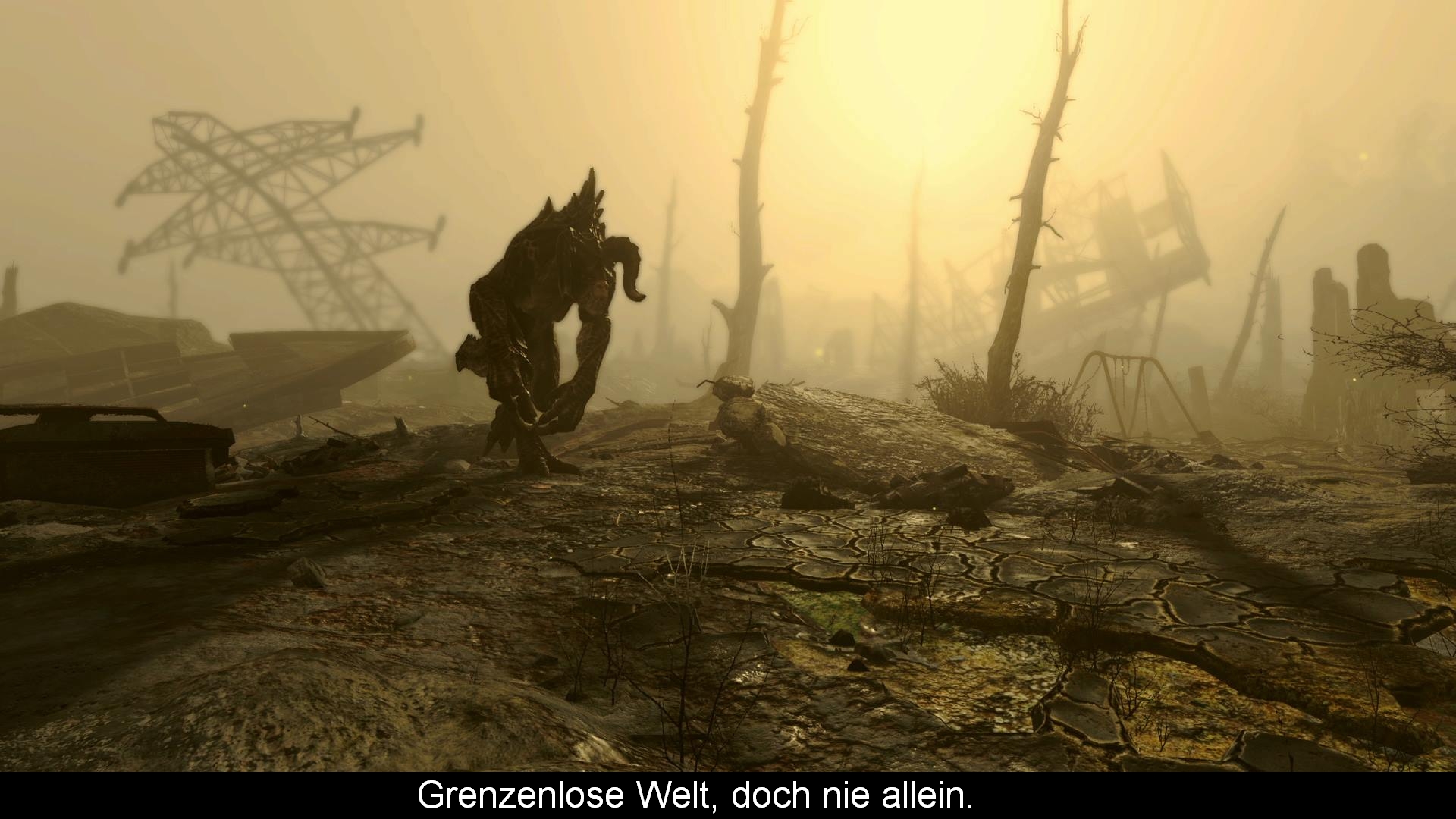 Und WAS FÜR EINE WELT. Nein, hier gibt es nicht 5 kleine Punkte auf der Karte wie bei Mad Max, keine Copy & Paste NPCs wie in Assassin’s Creed und nicht an jeder Ecke ist irgendwas los. Klar werden gewissene Ereignisse auch hier mit Fortschritt der Hauptquest getriggert, aber man könnte quasi nach dem Intro nur mit der Pistole bewaffnet durch die ganze Karte stampfen und sich mit Supermutanten anlegen, Siedlungen ohne Quest dahinter erkunden und beim Versuch sich von neuen Überraschung ablenken lassen.