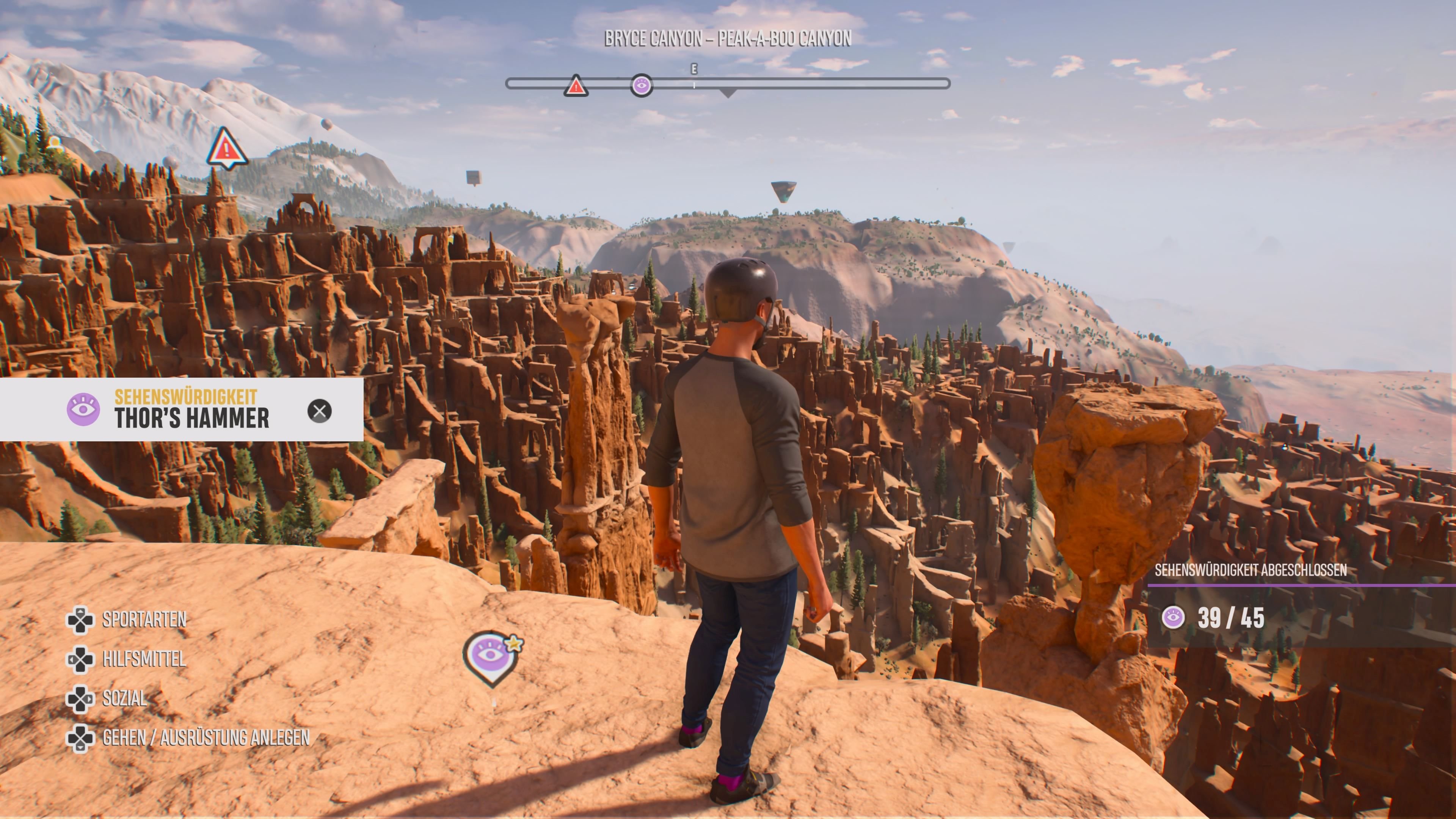 Das Szenario wurde von den schneebedeckten Gipfeln in Europa zu den amerikanischen Nationalparks Bryce Canyon, Yosemite Valley, Sequoia Park, Zion, Canyonlands, Mammoth Mountain und Grand Teton verlegt und zu einem riesigen Spielplatz verschmolzen. Diese wilde Mischung garantiert unterschiedliche Biome wie Schneebedeckte Berge, dichte Wälder oder eine karge Wüstenlandschaft! Geografisch nicht alles korrekt, aber bestens geeignet, um mit dem neuen Fahrrad alles zu erkunden. Schnell schaltet man während der unterschiedlichen Rennen verschiedene Ausrüstung frei. Darunter fallen Rennräder, Downhill-Räder oder Slopestyle Bikes. Jedes mit eigenen Attributen, Aussehen und Handhabung. Doch auch bei Snowboards, Ski, Gleitschirm und dem Raketen-Gleitschirm findet man für unterschiedliche Szenarien das passende „Werkzeug“. Davon sollte man auch Gebrauch machen, denn das Spiel pflastert einem schneller die Landkarte mit Wettbewerben zu, als man sie Abarbeiten kann. Vom Rennen mit Ski oder Rad, zur Trickmeisterschaft mit Snowboard bis hin einem Gleitschirm-Rennen gibt es jedenfalls viel Abwechslung. Auch werden vier unterschiedliche Schwierigkeitsgrade zum Meistern geboten, sowie drei kleinere Nebenaufgaben, die es zu erfüllen gilt. Jede Leistung wird mit Erfahrungspunkten und Sternen belohnt. Erste lassen einem in dem jeweiligen Sportlevel aufsteigen und besonderes Equipment freischalten, letzteres schalten hingegen Wettbewerbe frei und zeigen der Community auf welchem Level man sich gerade befindet.