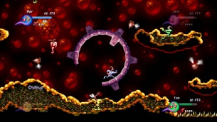 Die Geschichte von Earthworm Jim ist schnell erklärt. Euer Leben als stink normaler Wurm gestaltet sich recht trist bis zu dem Zeitpunkt wo ein Raumanzug auf die Erde fällt und euch trifft. Dieser verleiht euch ungeheure Stärke und die Fähigkeit eine Waffe zu tragen. Da man als Wurm im Raumanzug ansonsten nichts zu tun hat, reist ihr durch die Galaxie und müsst eine Prinzessin und eigentlich das ganze Universum retten. Man muss aber auch sagen, dass die Geschichte im Spiel nur eine untergeordnete Rolle spielt und nur am Anfang wirklich erklärt wird. Denn eigentlich ist Earthworm Jim HD ein reinrassiger Plattformer, in dem ihr euch aus der 2D-Ansicht durch die Levels hüpft, schießt und hangelt. Dabei wurde sich strikt an das Original gehalten und eben das führt zu einigen Problemen bzw. Designschwächen. So ist nicht immer wirklich ersichtlich, welches der Objekte jetzt im Hintergrund liegt oder wirklich zum Level gehört. Zudem gibt es auch in der Steuerung einige Begrenzungen, die heutzutage den Spielspaß bremsen. Man kann beispielsweise an einem Seil hängend nicht nach oben springen, man kann nicht in der Luft schießen und das waren jetzt nur Beispiele. Zur damaligen Zeit war es vielleicht verständlich, aber heutzutage sorgt das meist für Frust. Von den völlig Zusammenhanglosen Leveln fängt man am besten gar nicht erst an. Zwischendurch gibt es auch etwas Abwechslung, da man dann in einem Rennen von A nach B durchs Weltall eine Weltraumkuh schlagen muss. Dabei muss man Asteroiden ausweichen und selber Punkte sammeln. Das Ganze ist zwar ganz nett, aber ist sicher keine Spielspaßgranate. Trotzdem macht das Spiel irgendwie auf seine eigene Art Spaß, denn Earthworm Jim überzeugt durch seine verrückten Mimiken und auch die absolut durchgedrehten Endgegner sorgen immer wieder für Lacher. Wenn man sich dann an das Gameplay und die Schwierigkeit gewöhnt hat, entfaltet sich einem auch die Pracht des Spiels. Aber ein Remake wäre kein Remake, wenn es auch nicht einige Verbesserungen gäbe. So gibt es jetzt auch spezielle Level, die man zu viert im Multiplayer-Modus spielen kann und das sogar lokal an einer Konsole. Sehr lobenswert! Neue Waffen und Levels, die sich perfekt ins Gameplay integrieren, dürfen natürlich auch nicht fe